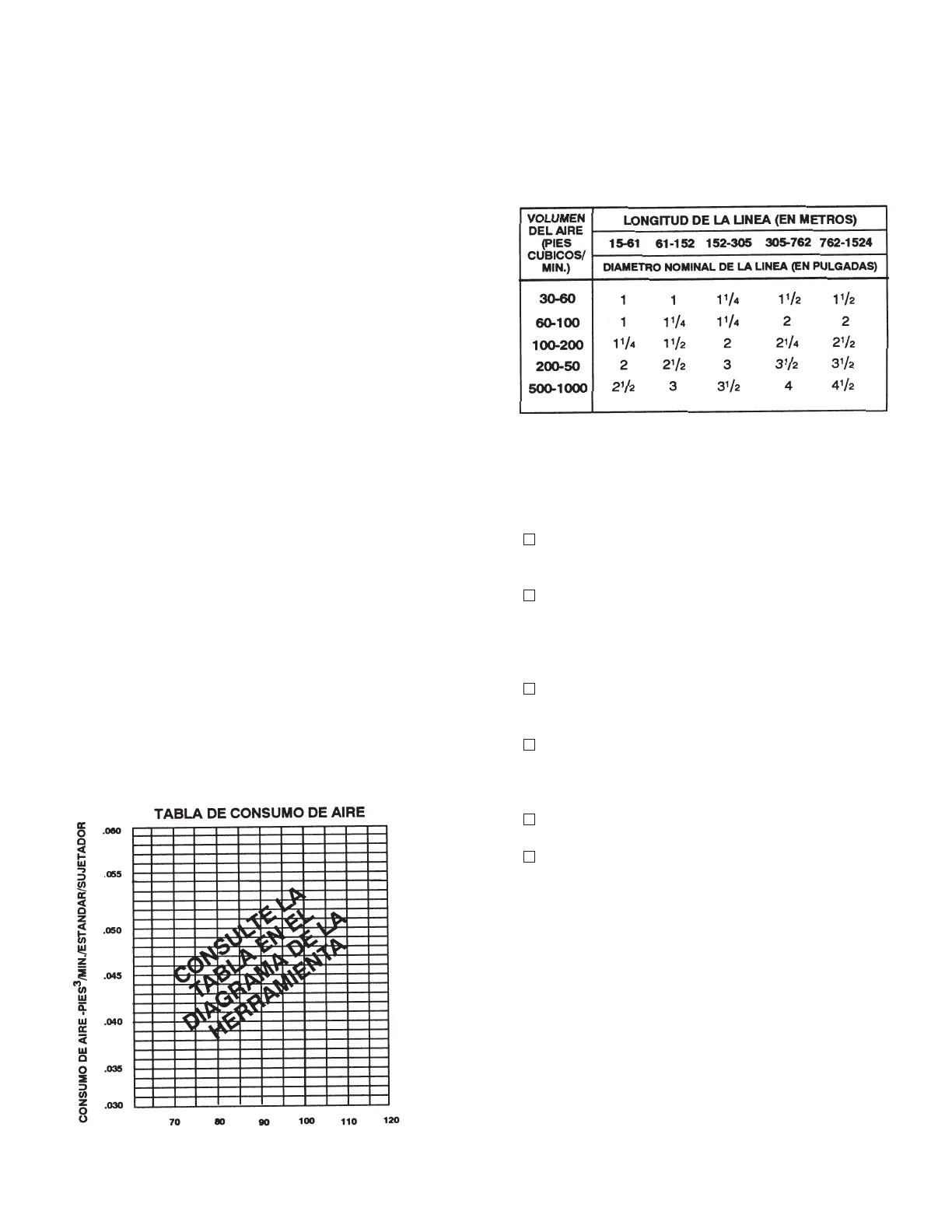 presiones superiores a 120 psi. La tabla de consumo