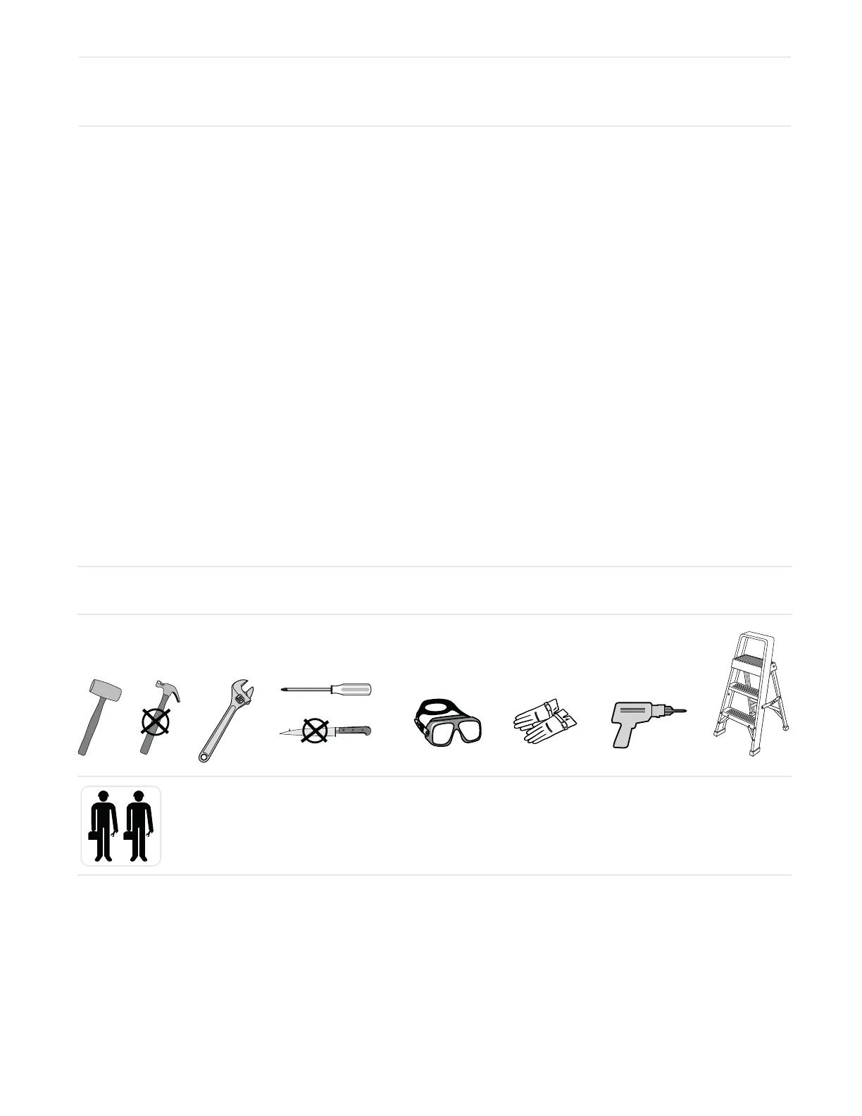 están dañadas ANTES de comenzar o disponer el montaje | Revise todas las instrucciones de montaje | Monte todas las
