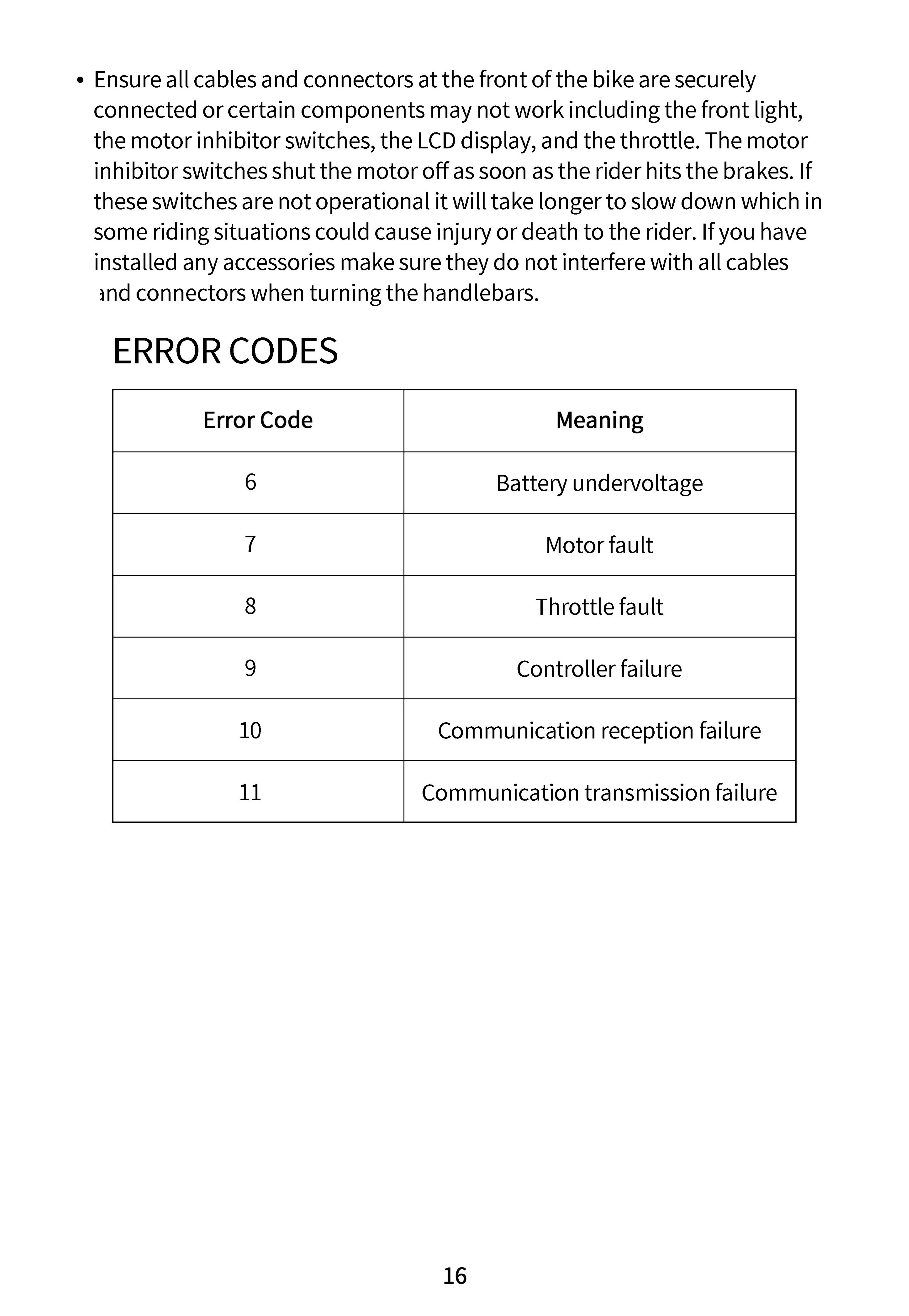 DUOTTS N26 - Error Codes