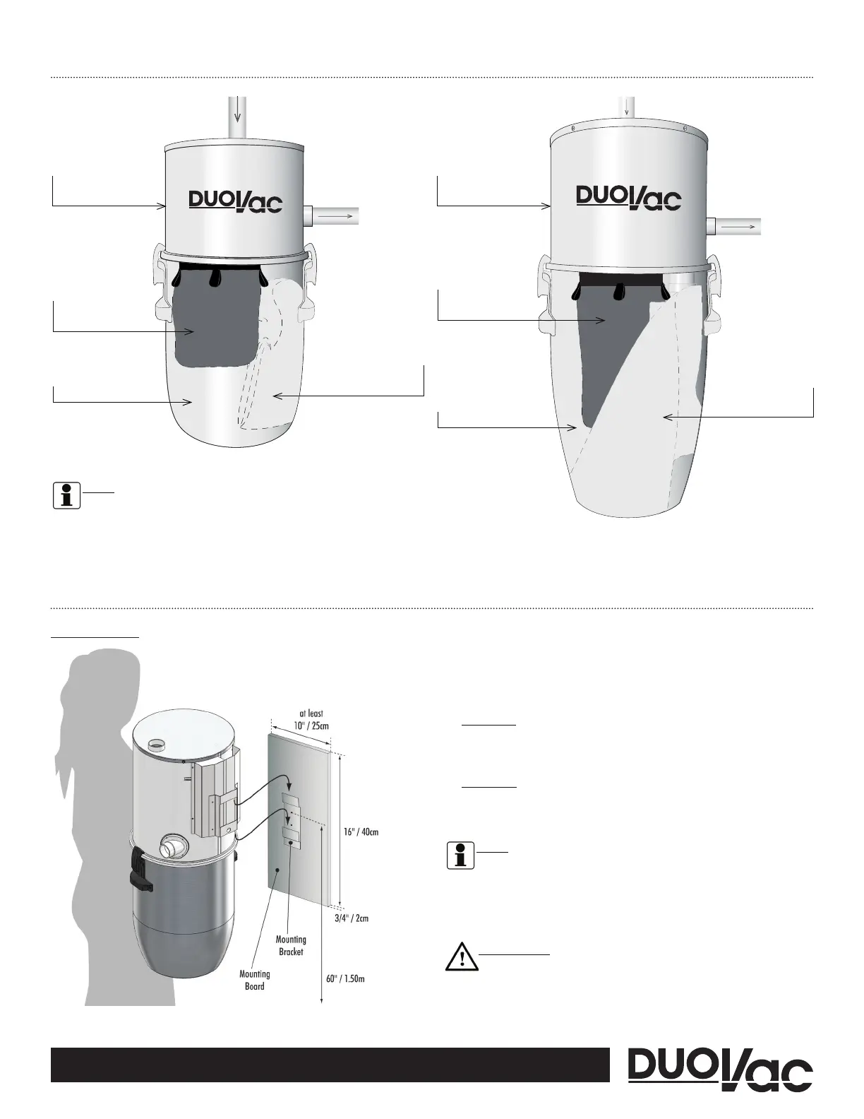 be fastened at 60” / 1,5m from the ground in order for the dust canister to be readily