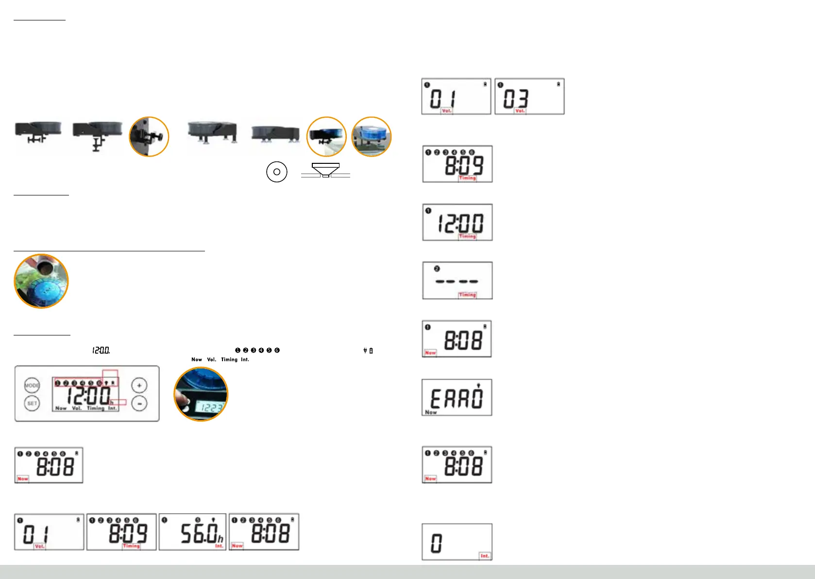 Programmierung der Fütterungszeiten (Timing): Drücken Sie die Taste MODE zweimal bis das Zeichen Timing erscheint