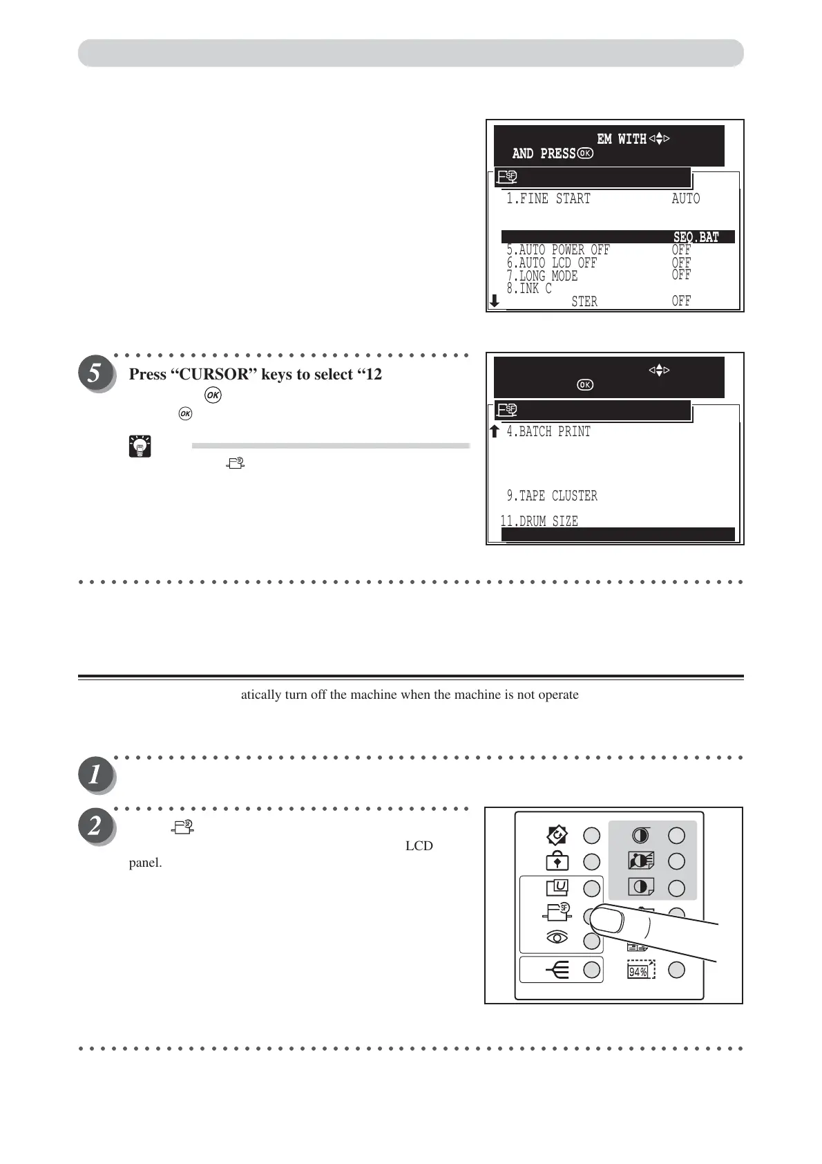 This function automatically turn off the machine when the machine is not operated for a specified period of