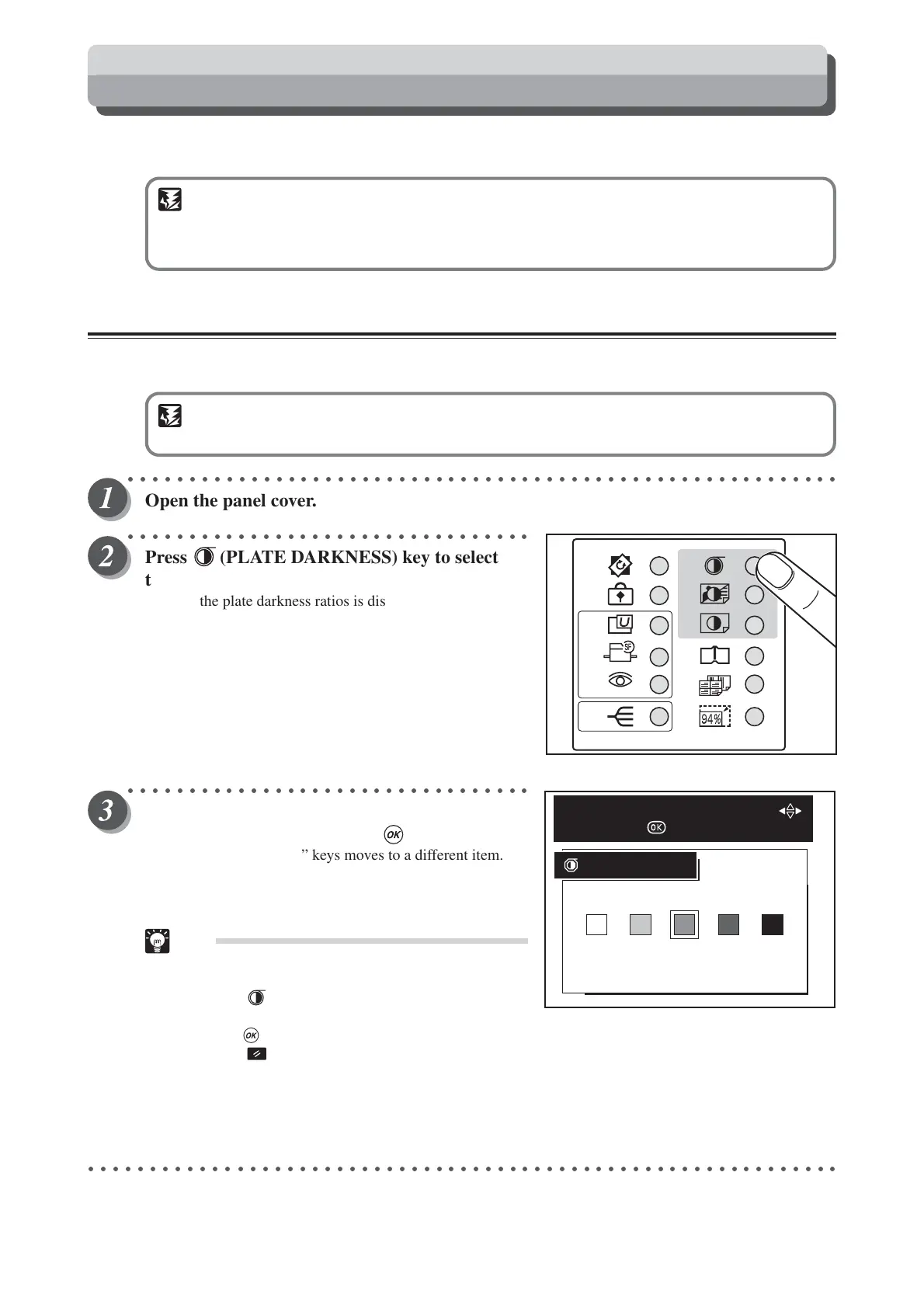 • If you adjust the plate darkness, you must repeat the platemaking process before making