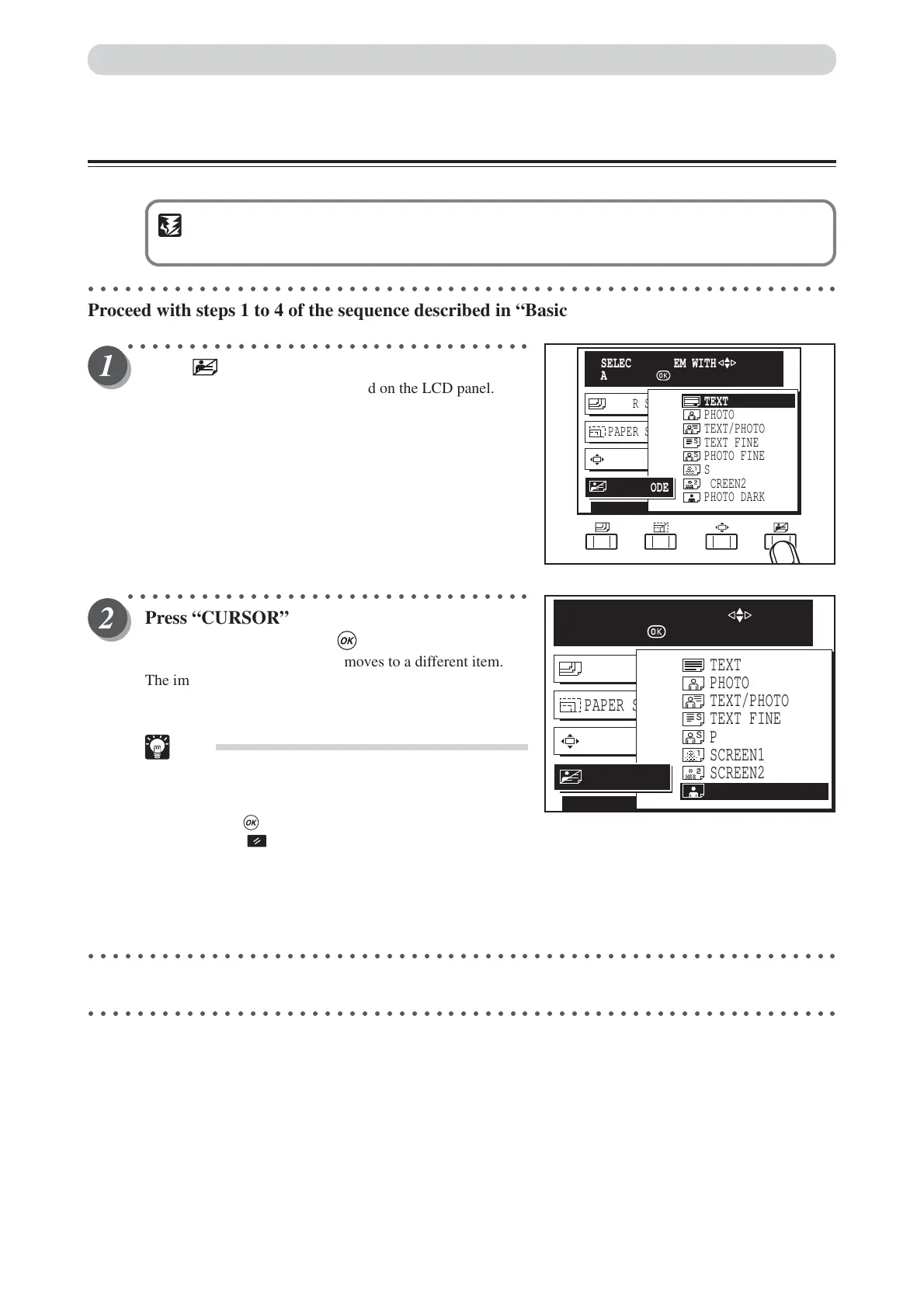 Press “CURSOR” keys to select “PHOTO