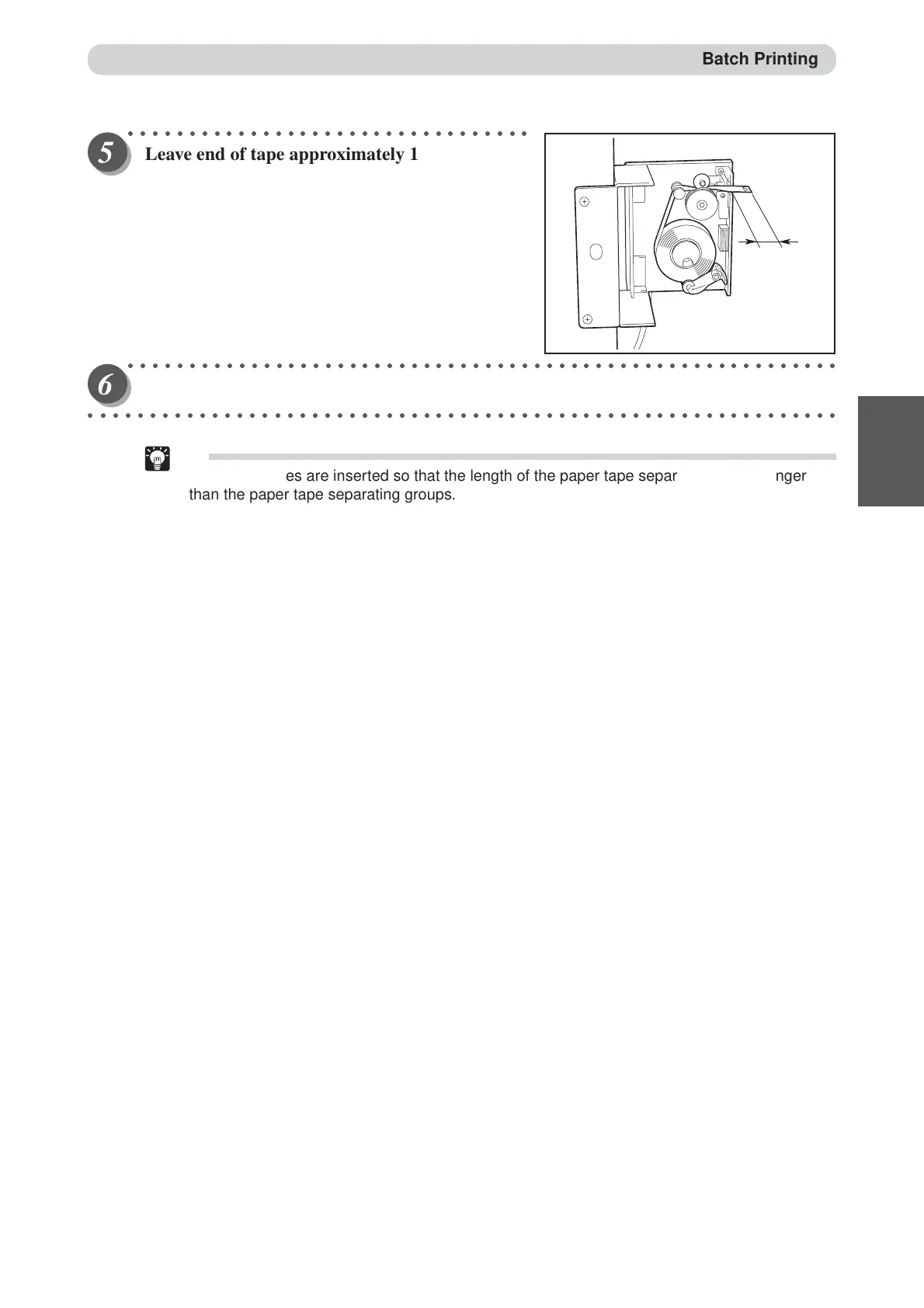 • The paper tapes are inserted so that the length of the paper tape separating sets is longer
