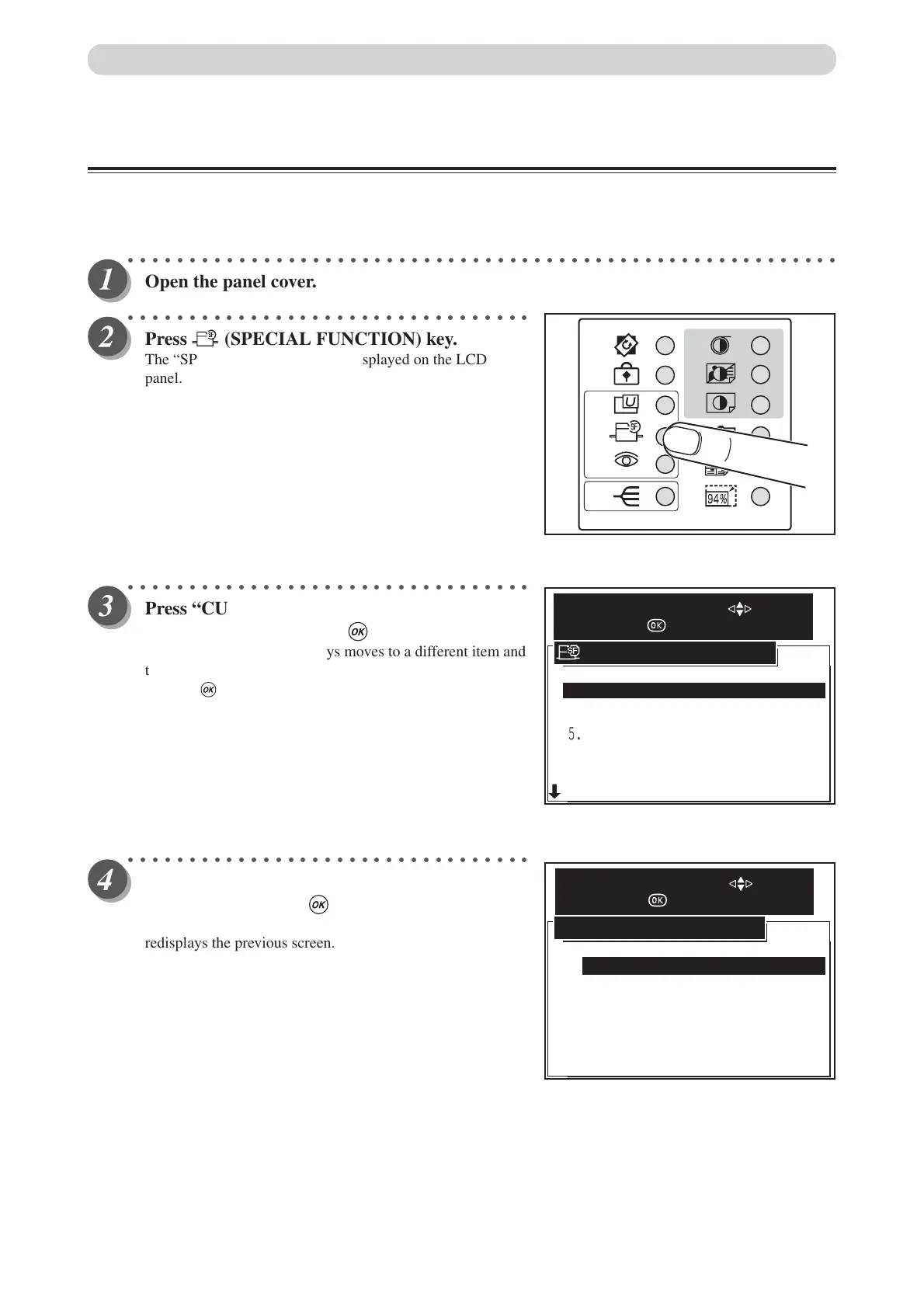 The “SPECIAL FUNCTION” is displayed on the LCD