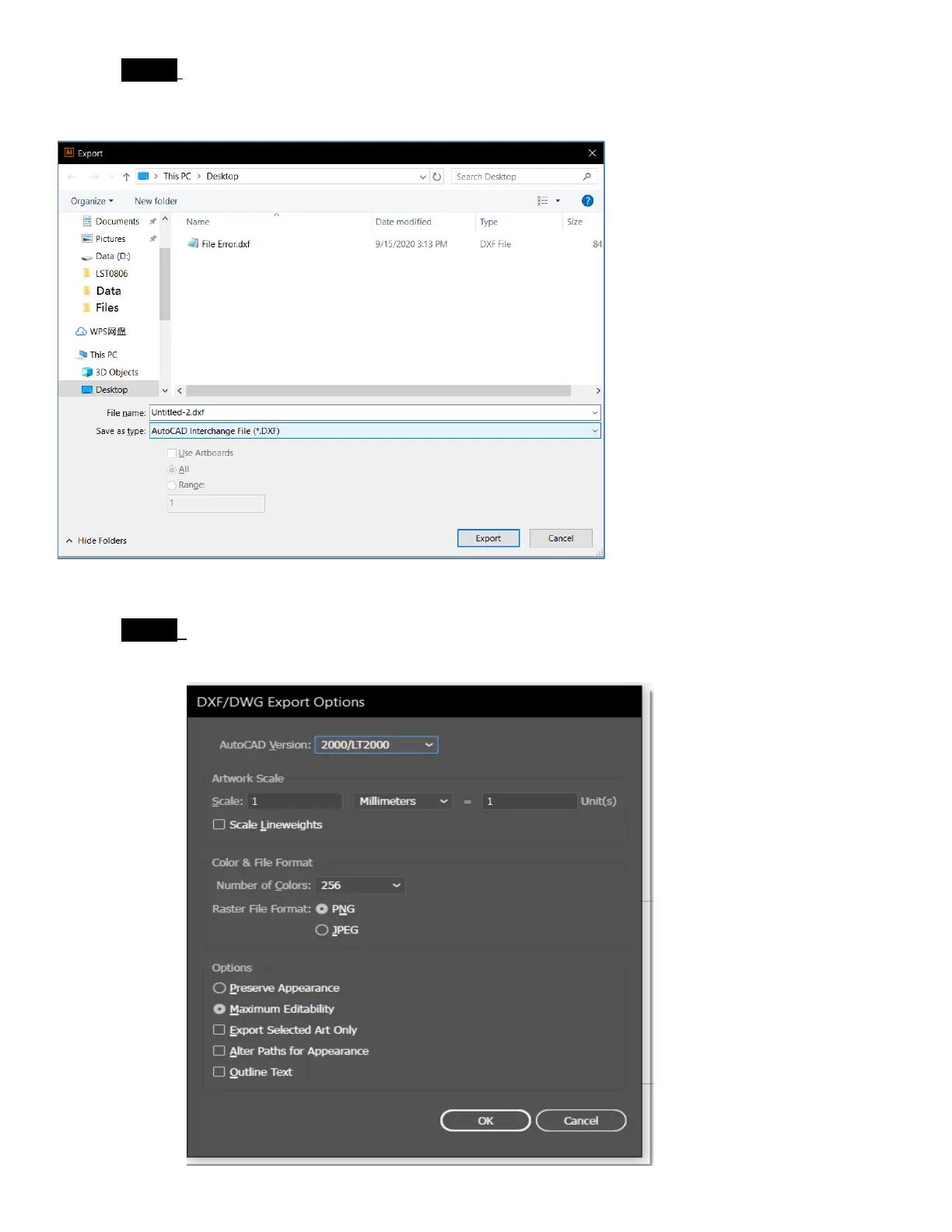 Step 5: DXF the unit in the export menu should be millimeter for the file, then select OK