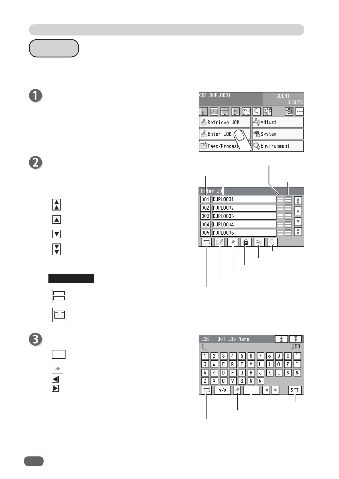 Enter a JOB name by touching numerals and letters.