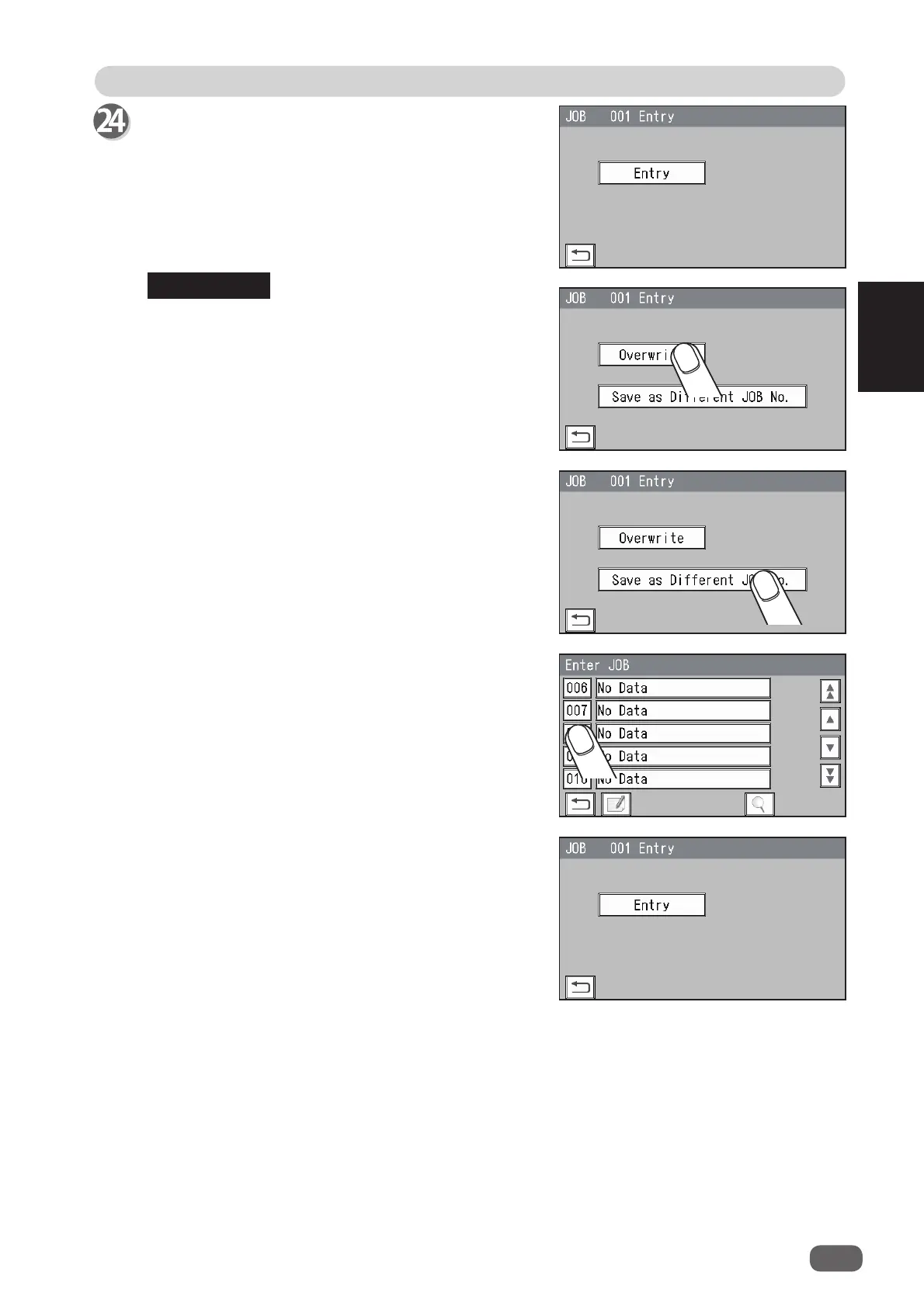 • To save the settings as a diff erent JOB number,
