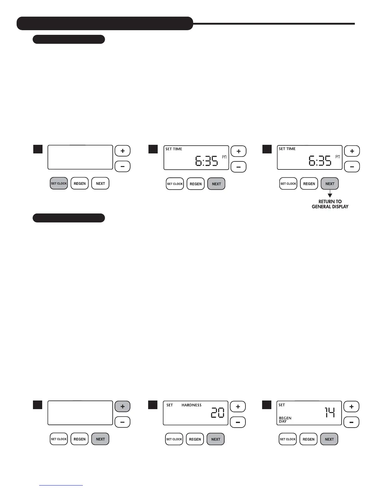STEP 2 – HARDNESS: Set the amount of hardness in grains per gallon (default 20) using