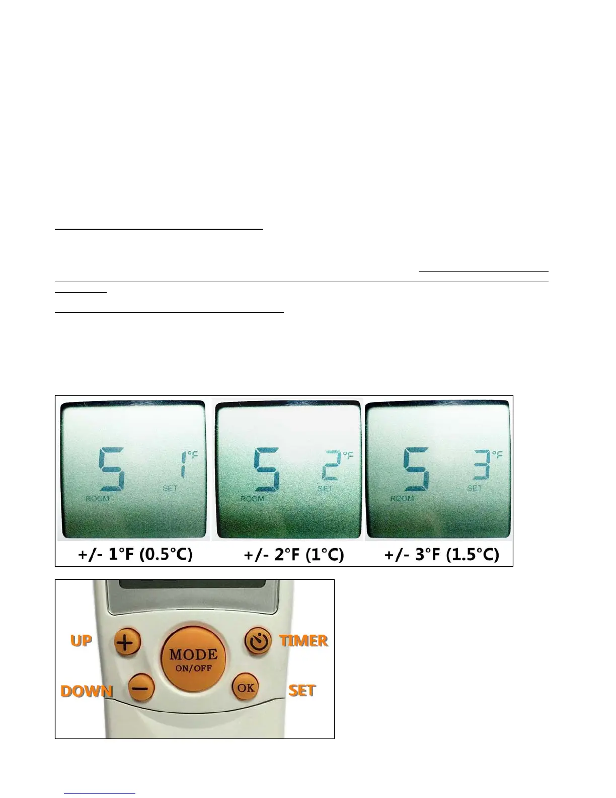 (1°C) between SET temperature and ROOM temperature, which determines when the system will be ON or OFF. There