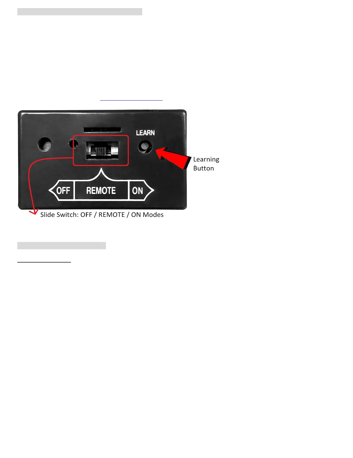Each transmitter has a unique RF code. To have the receiver box to accept the transmitter’s signal (code), be sure the slide