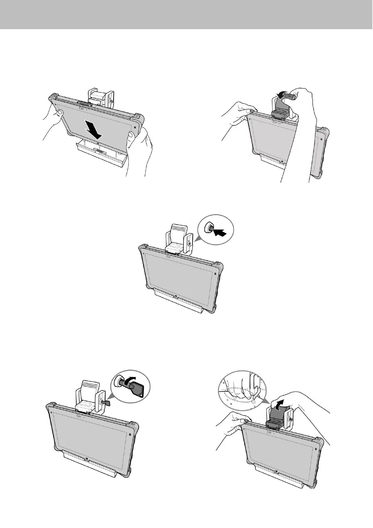 2. Secure the R11 tablet PC by pulling the latch
