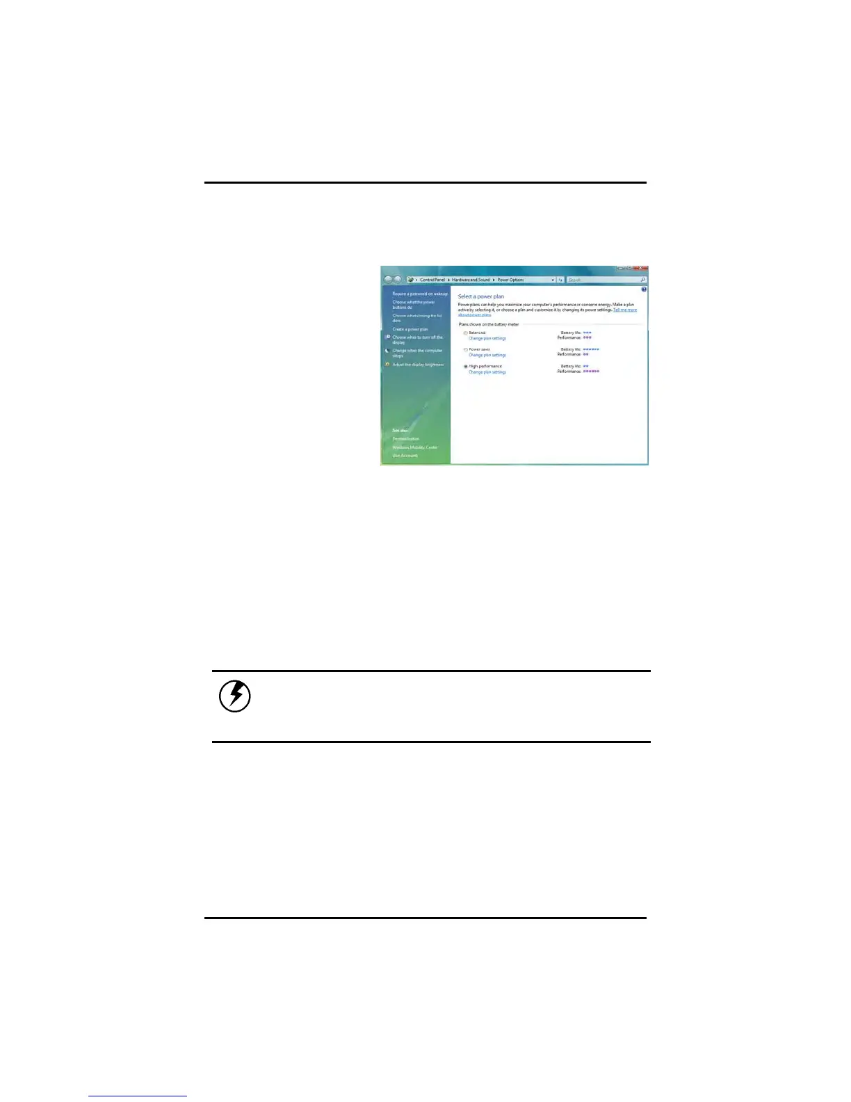 If you do not see the battery icon, enable it in Start /Control Panel/Power