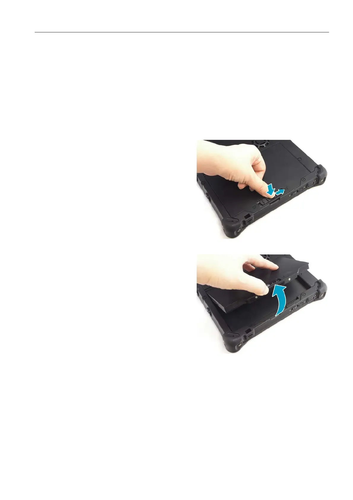 1. Press and hold the battery latch release