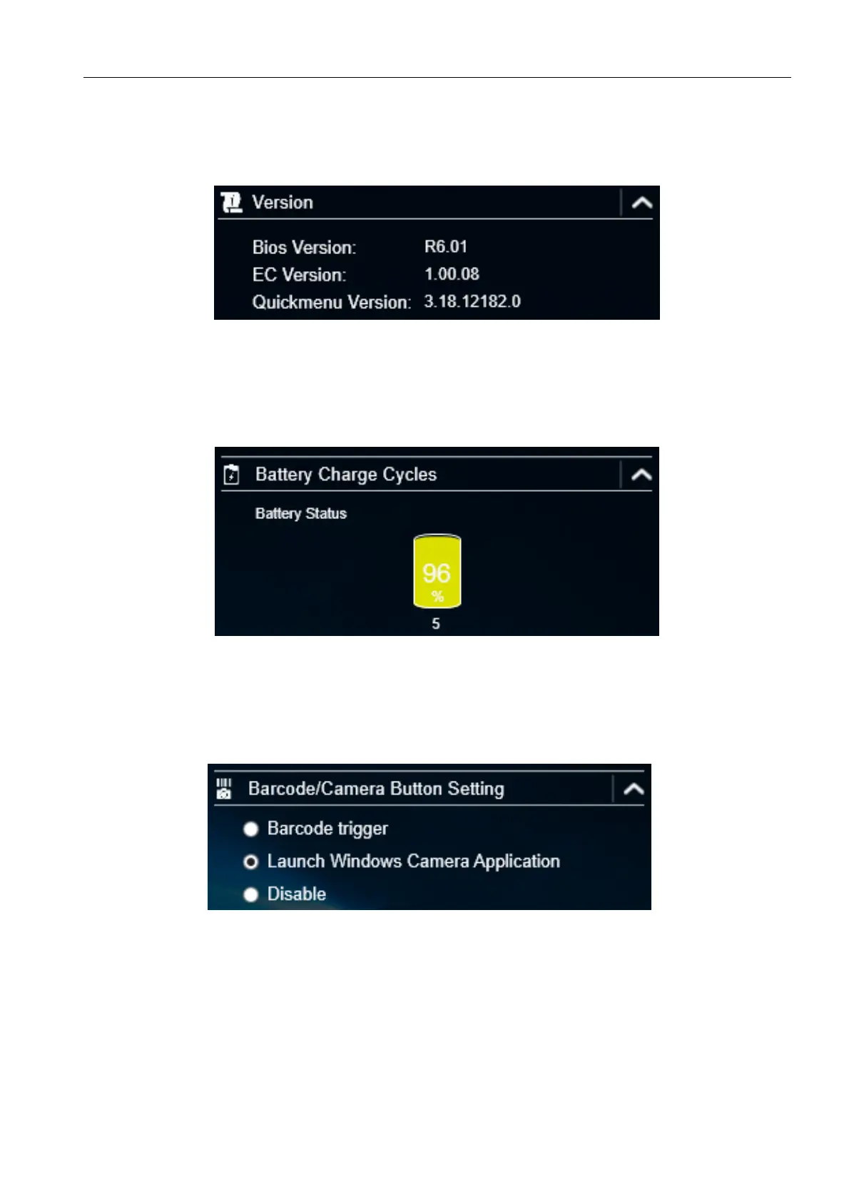On the Version section, you can view the Bios version, EC version, and Quick Menu