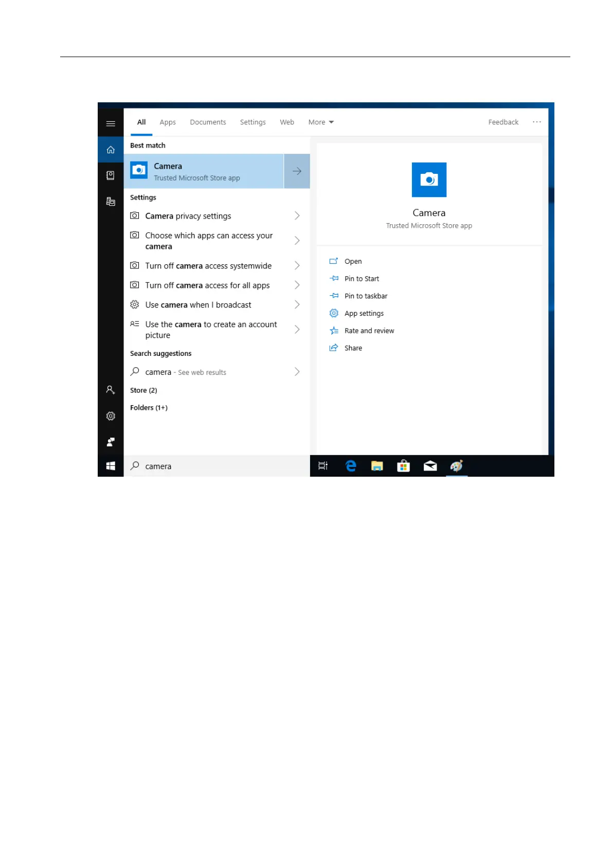 b. In Cortana search box, enter ‘camera’. Then tap Camera.