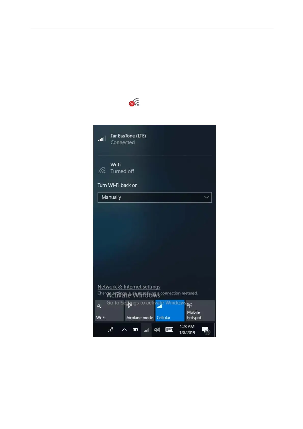 ) on the system tray. Then tap Cellular to