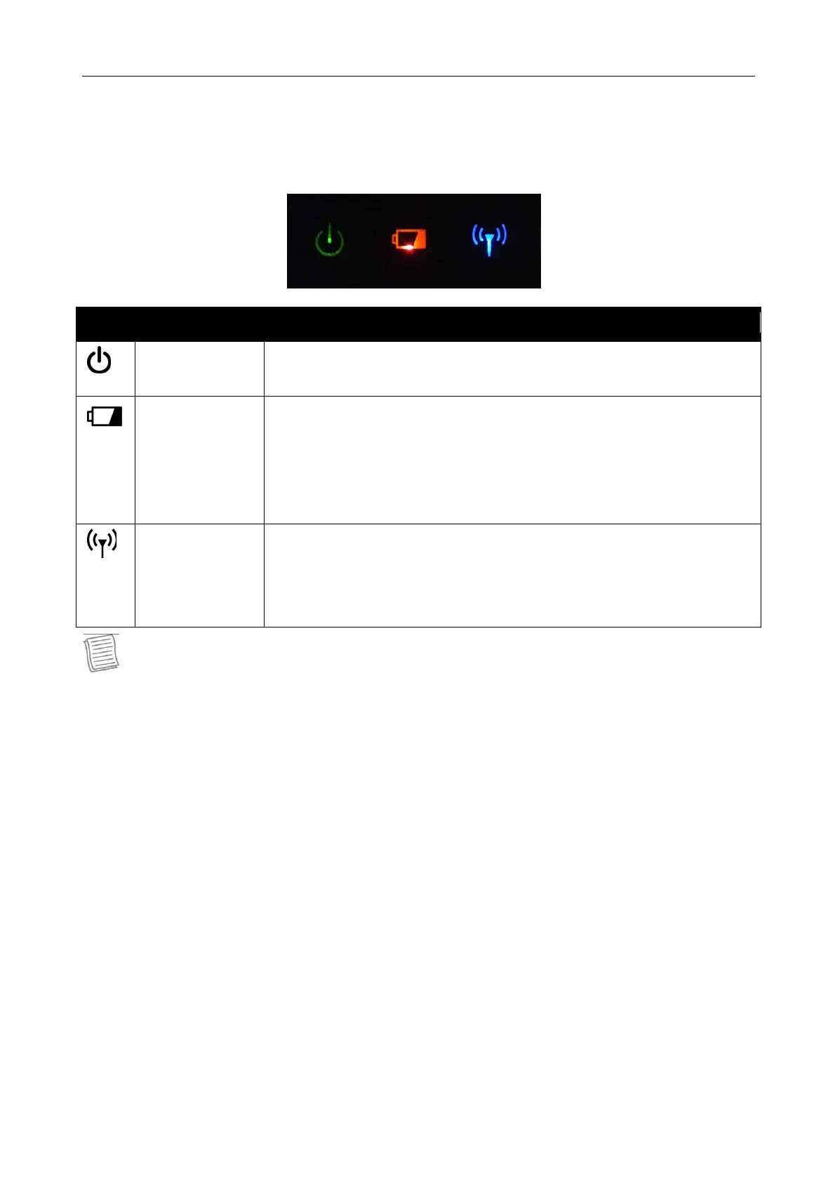 Battery Indicate the battery status: