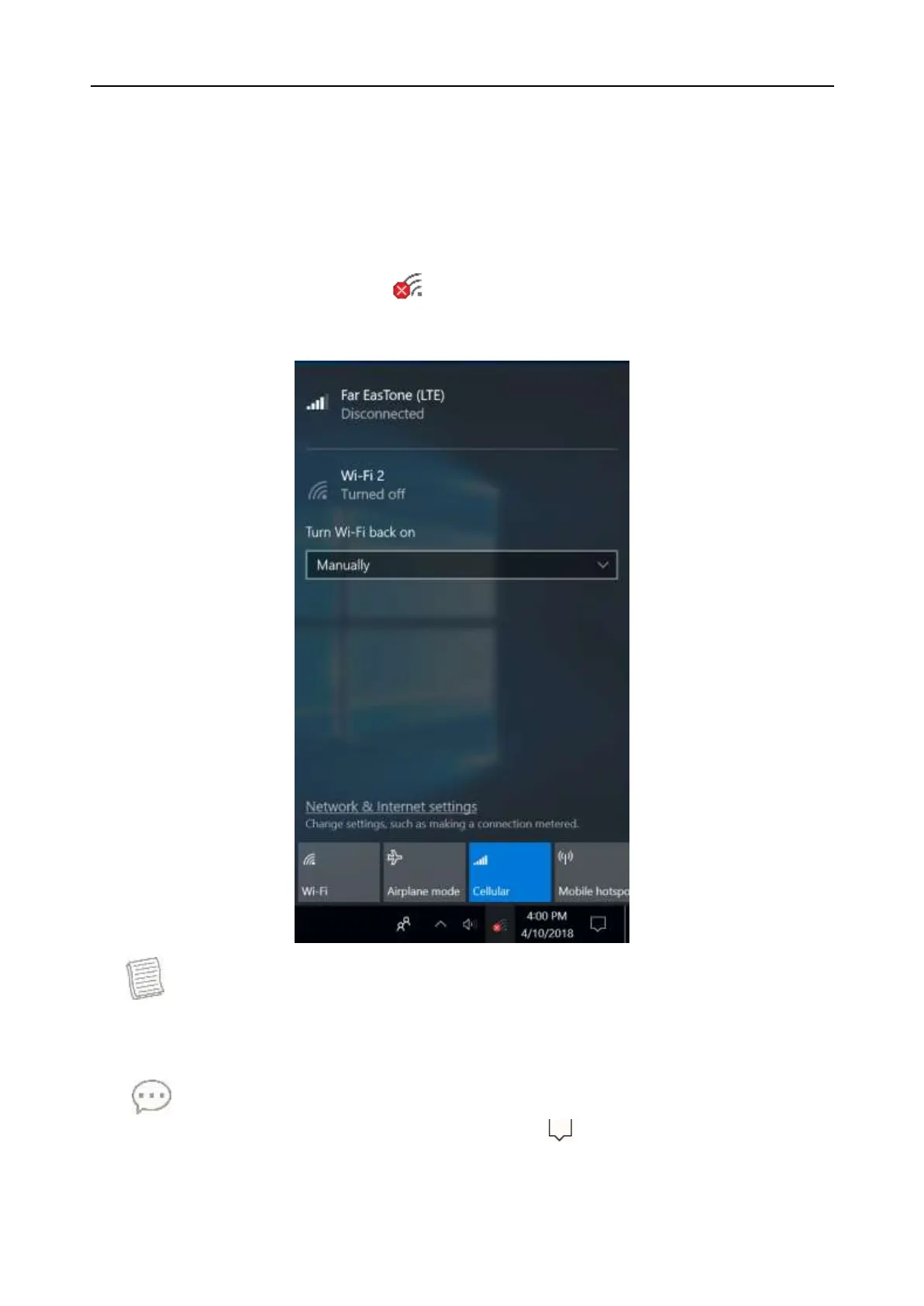2. Tap the cellular network icon ( ) on the system tray. Then, tap Cellular to