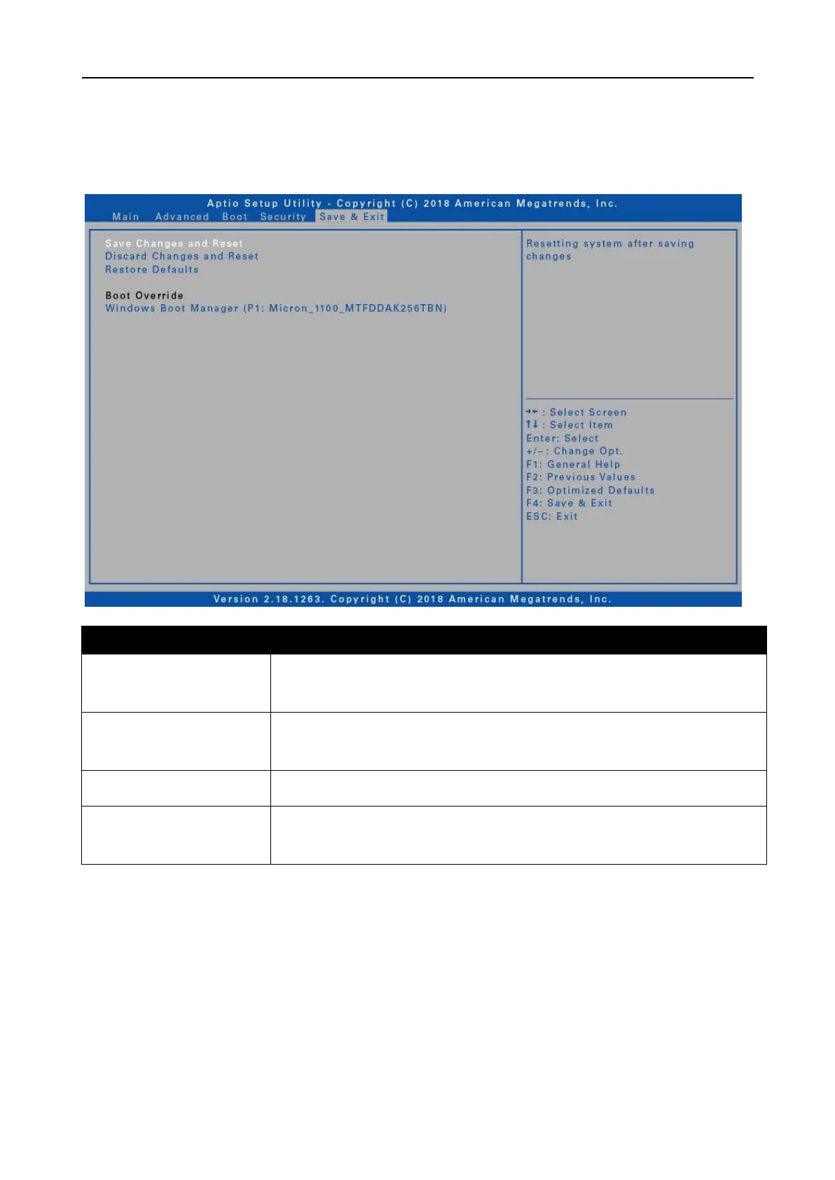 Save & Exit Menu