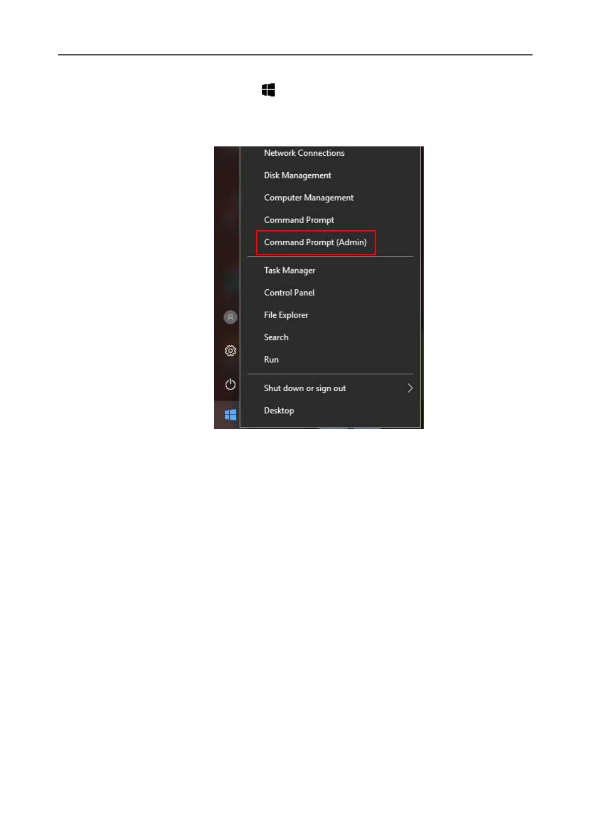 b. Right click and select Command Prompt (Admin) from the pop-up