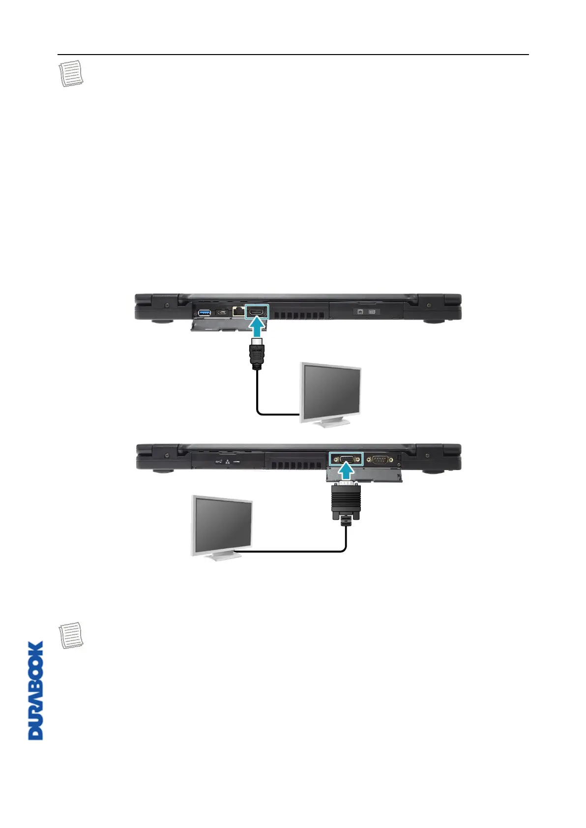 You can connect an additional display to your notebook by using the HDMI or