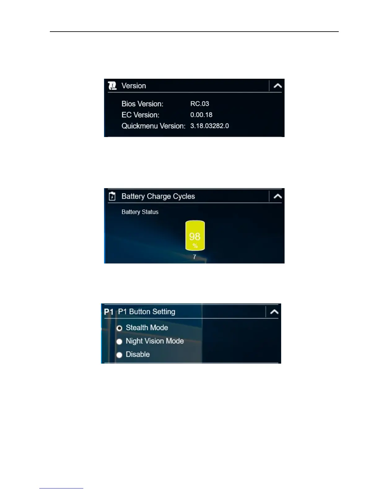 On the Version section, you can view the Bios version, EC version, and Quick Menu