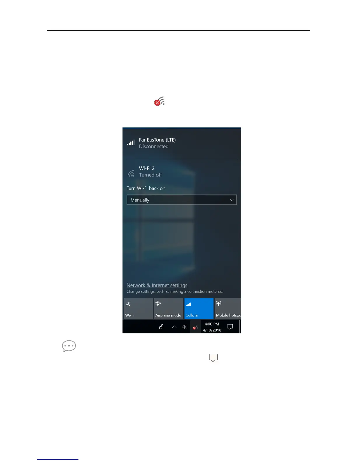 2. Tap the cellular network icon ( ) on the system tray. Then tap Cellular to