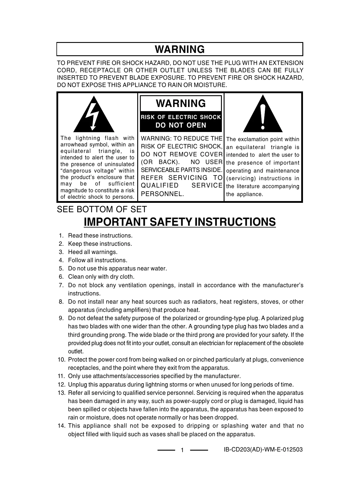 12. Unplug this apparatus during lightning storms or when unused for long periods of time.