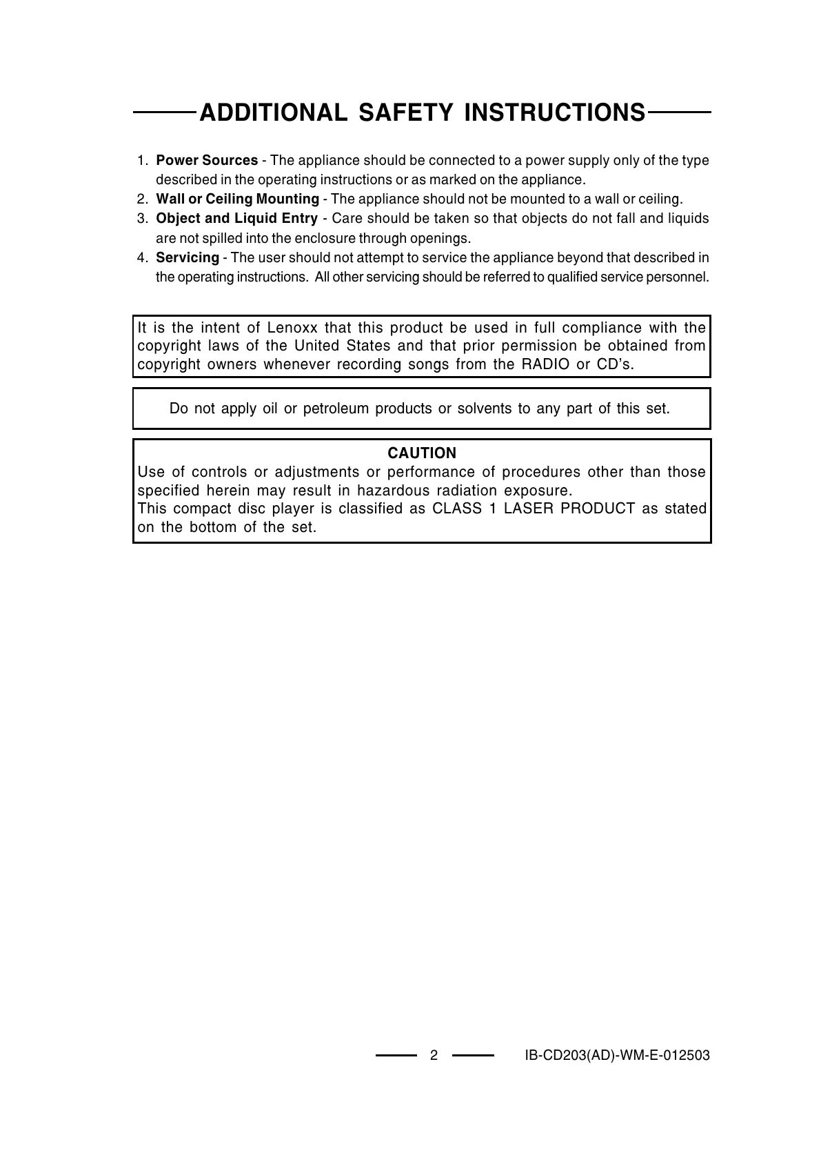 ADDITIONAL SAFETY INSTRUCTIONS