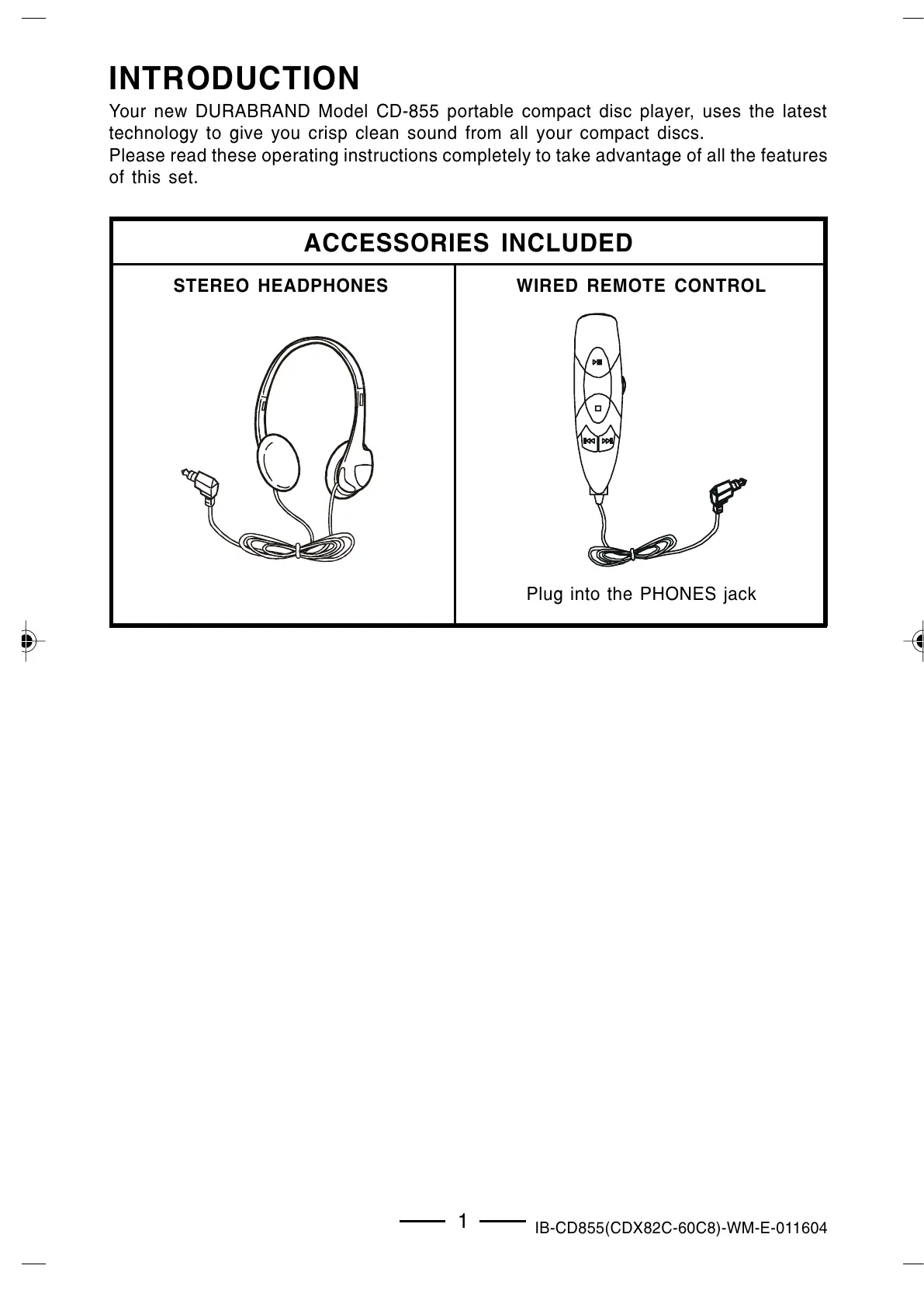 Your new DURABRAND Model CD-855 portable compact disc player, uses the latest