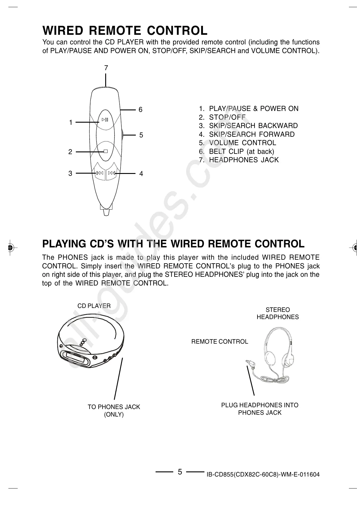 PLAYING CDS WITH THE WIRED REMOTE CONTROL
