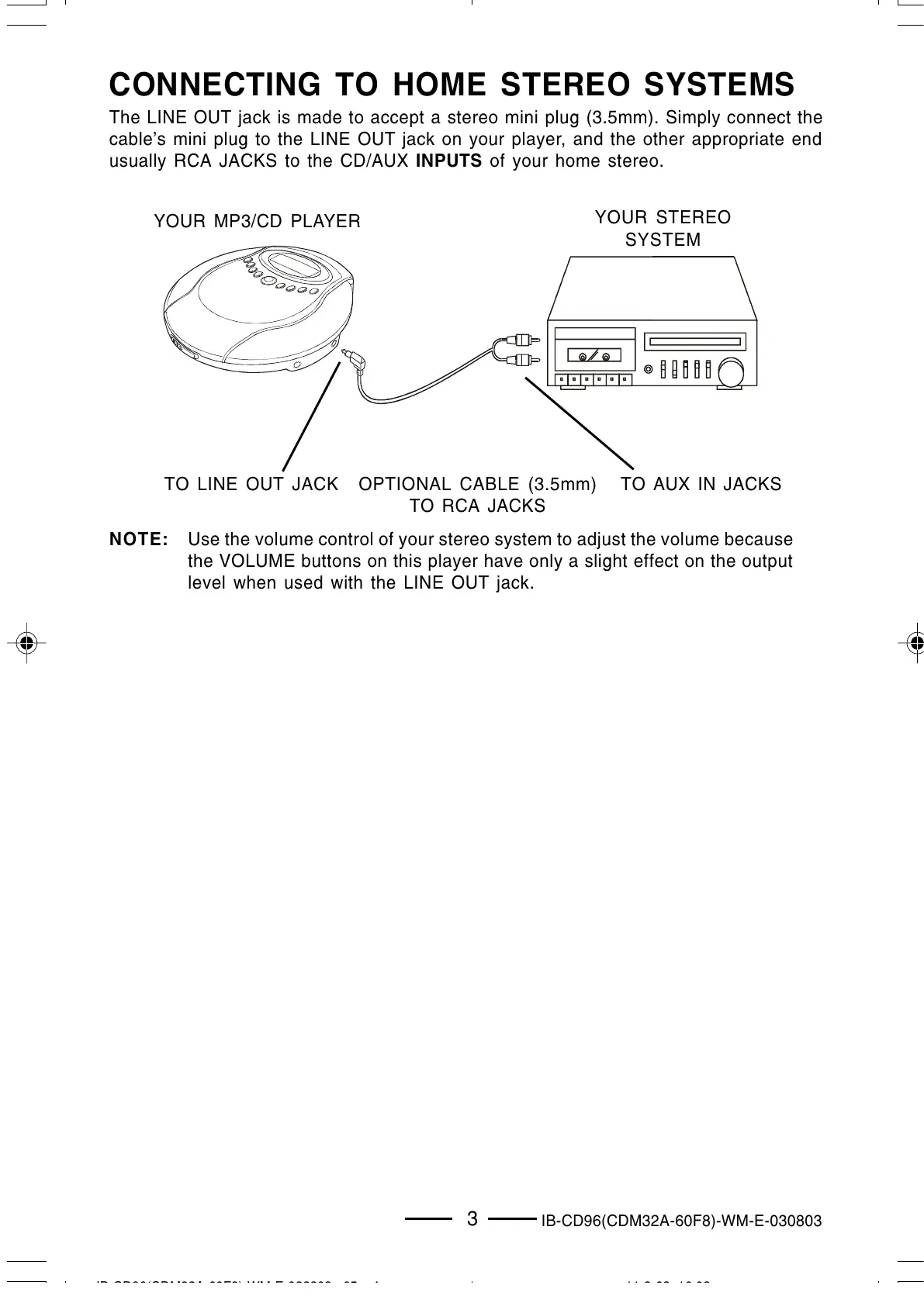 NOTE: Use the volume control of your stereo system to adjust the volume because