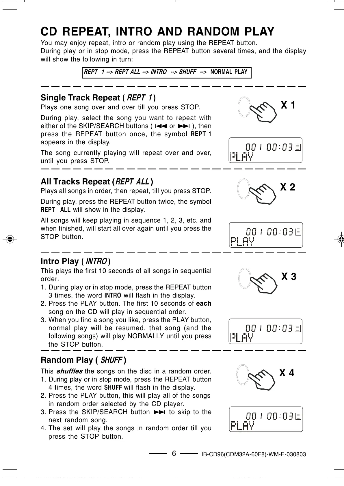CD REPEAT, INTRO AND RANDOM PLAY