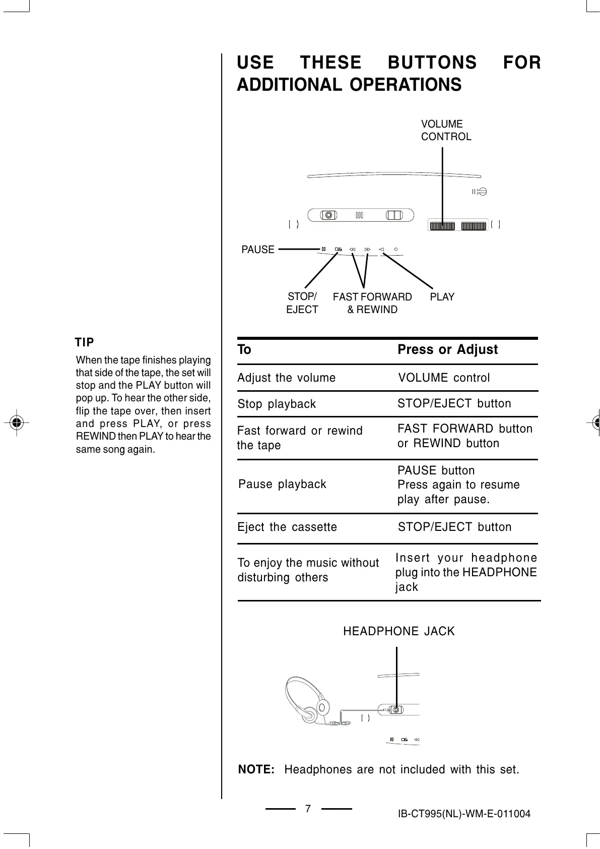 NOTE: Headphones are not included with this set.