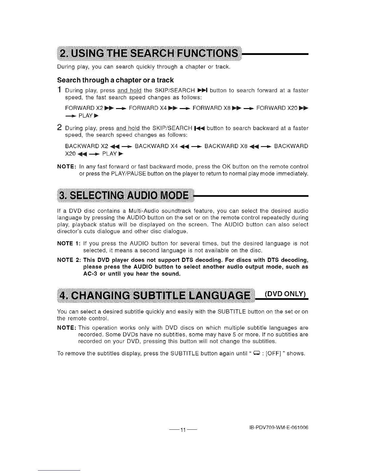 NOTE 2: This DVD player does not support DTS decoding. For discs with DTS decoding,