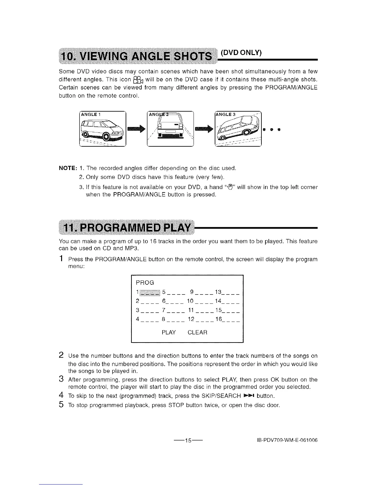 NOTE: 1. The recorded angles differ depending on the disc used.