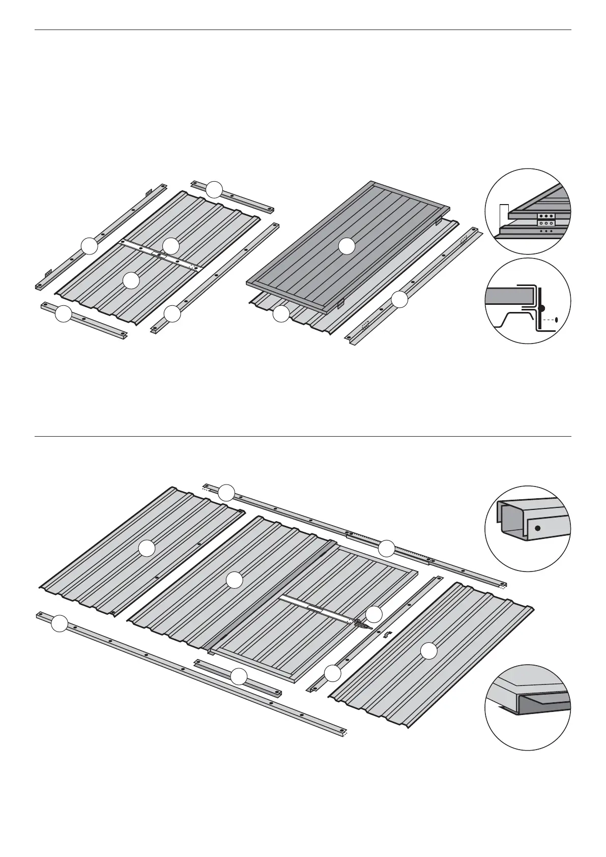 Jamb (P) on Narrow Sheet (Q). Fix at five points. Step 3 Position Channel (D) (cut-out sections inside) on top of Sheeting (A,