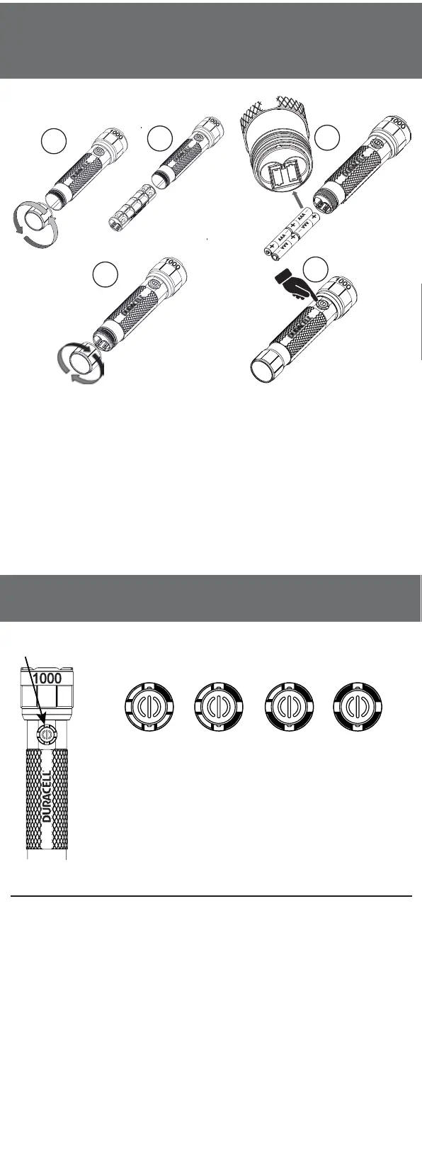 Press rmly to turn on ashlight. Thereafter, only a light touch is required to switch between High, Low,