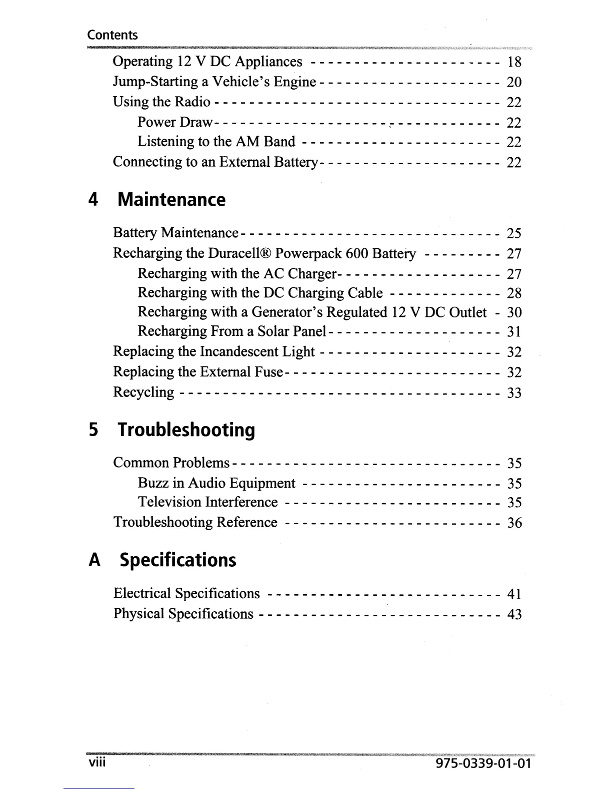 Recharging the Duracell® Powerpack 600 Battery - - - - - - - - - 27