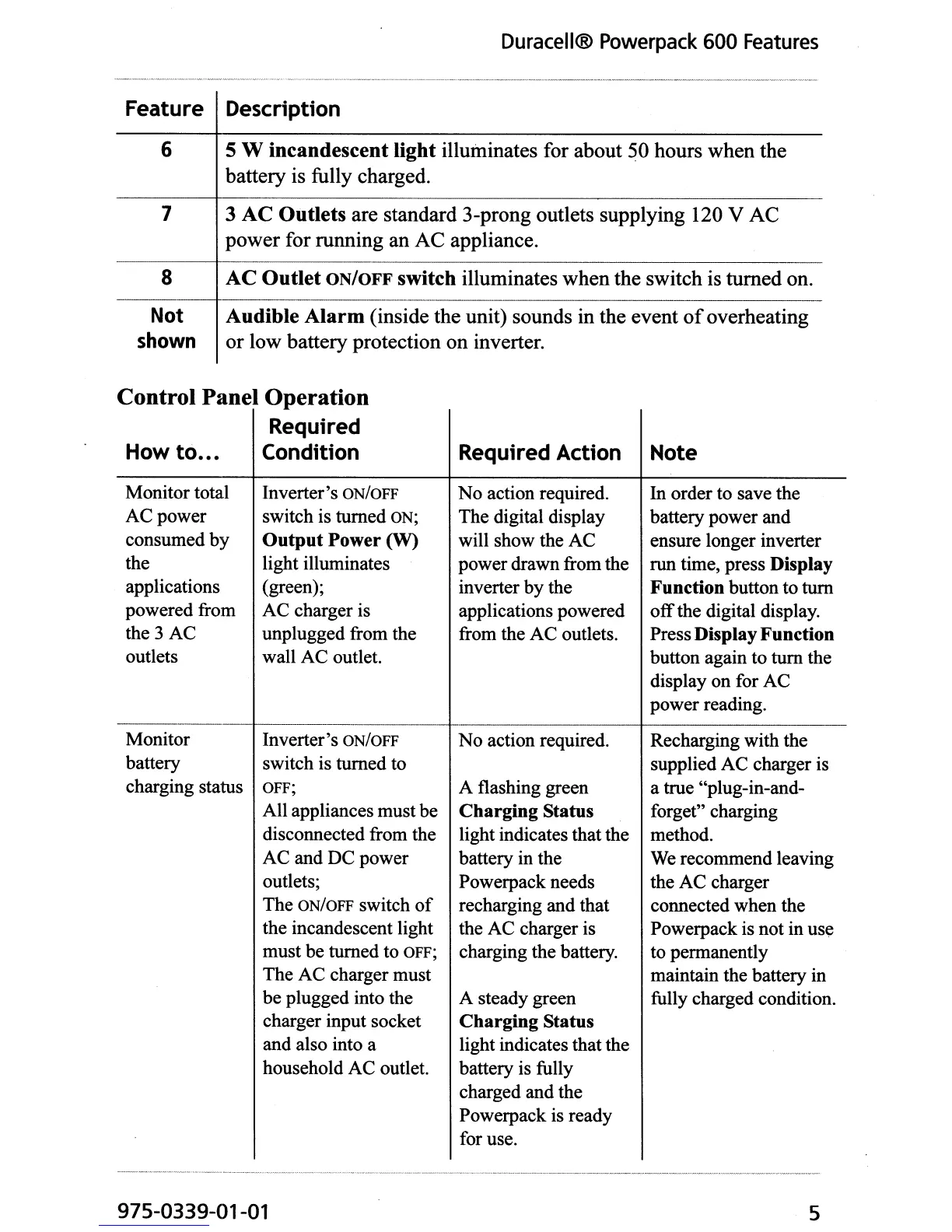 Duracell® Powerpack 600 Features