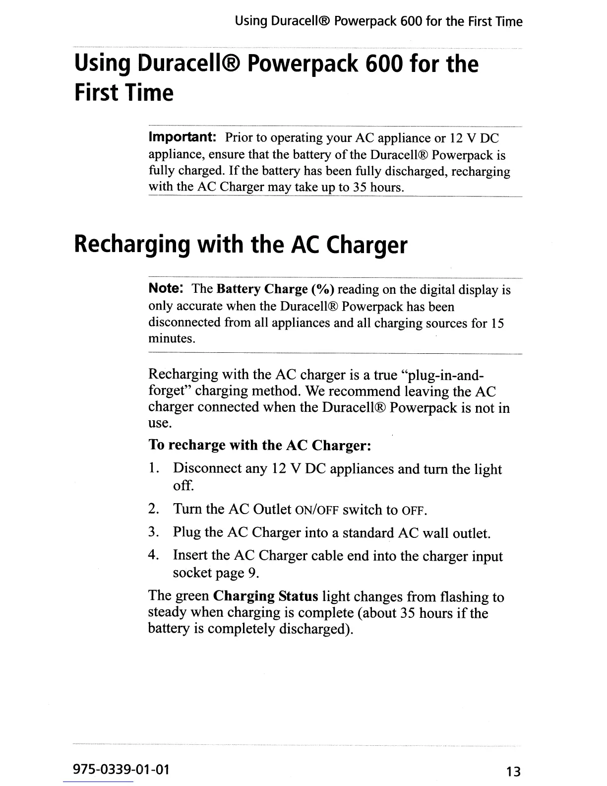 Using Duracell® Powerpack 600 for the First