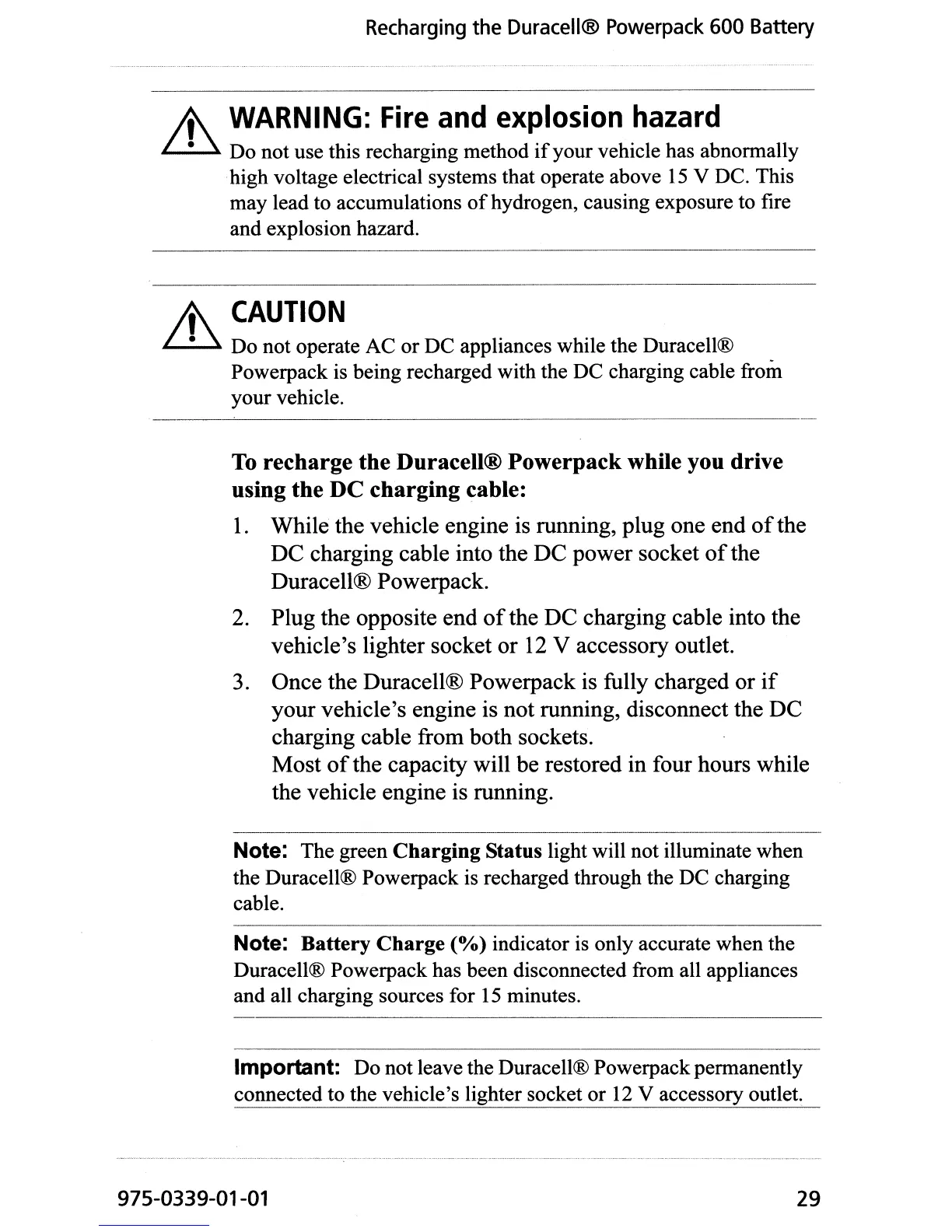 Do not operate AC or DC appliances while the Duracell®