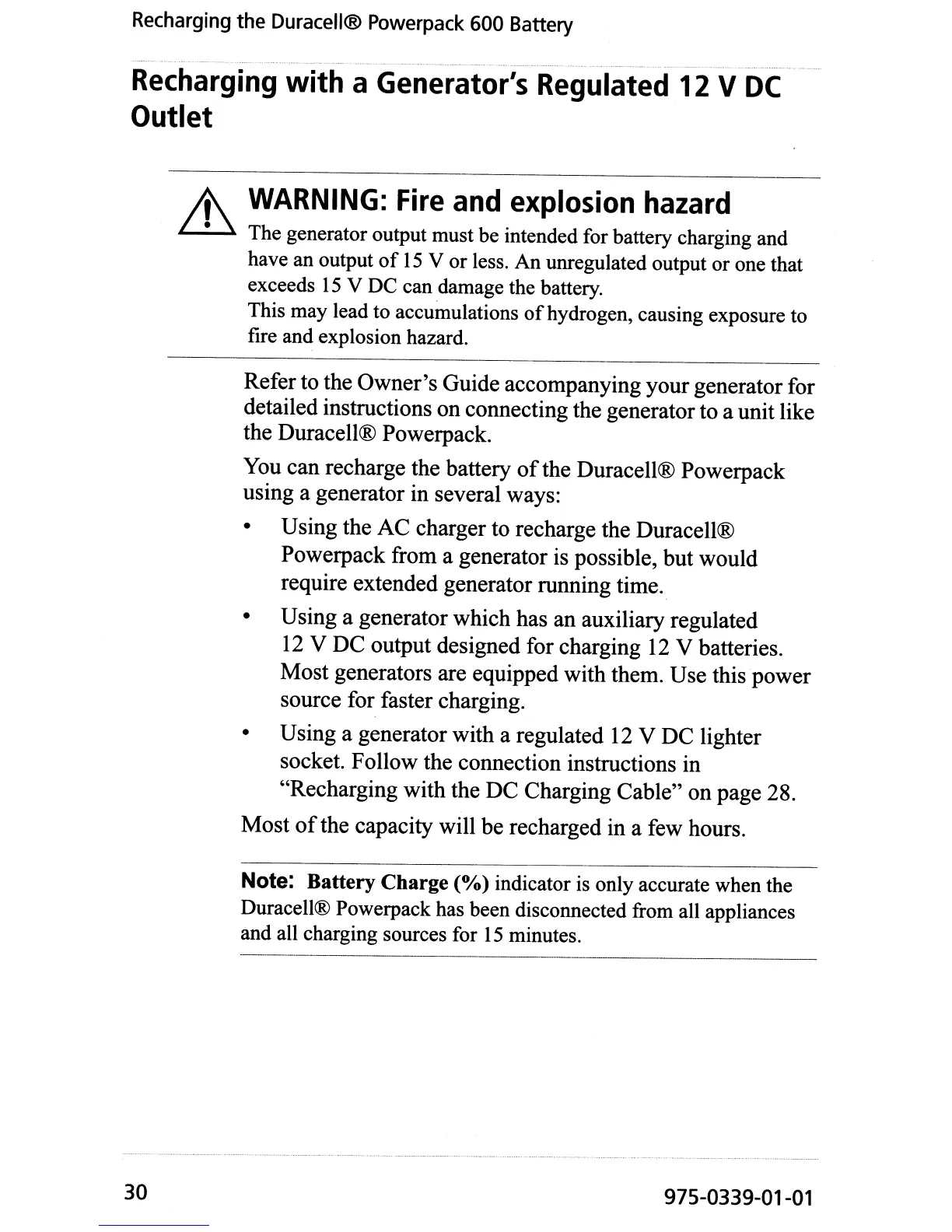 • Using the AC charger to recharge the Duracell®