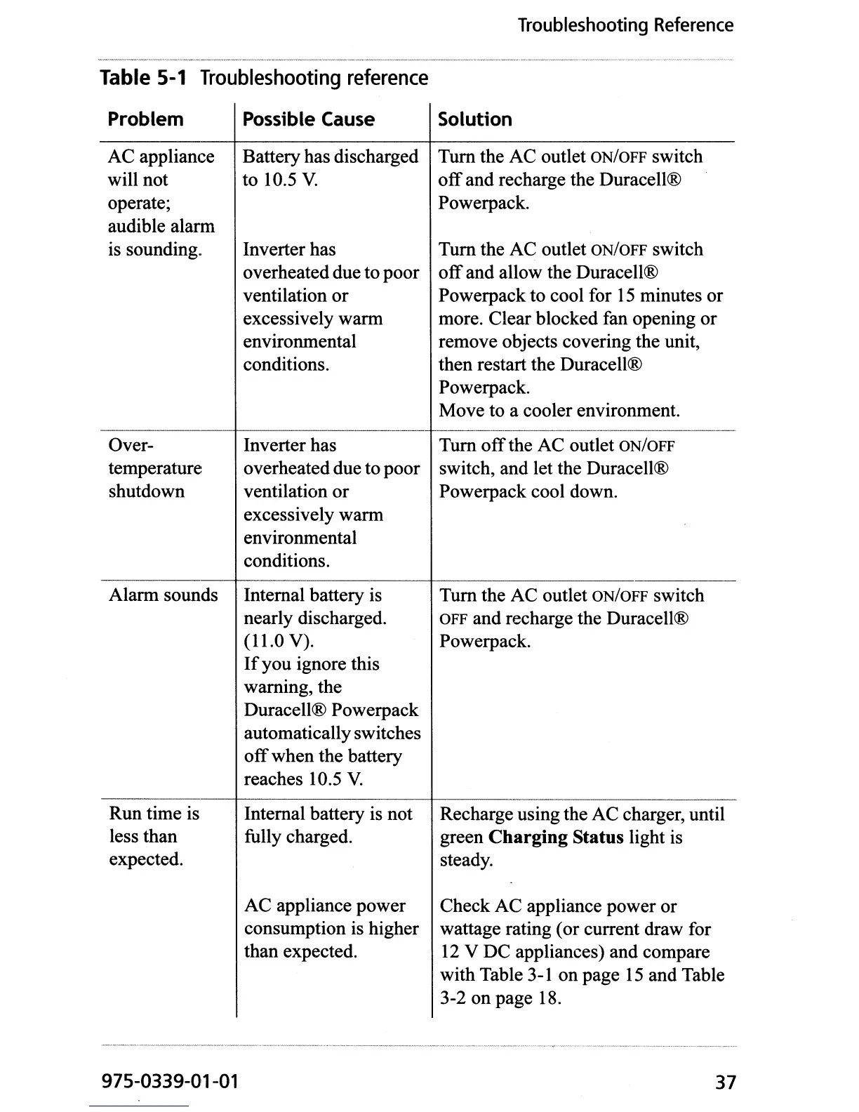 OFF and recharge the Duracell®