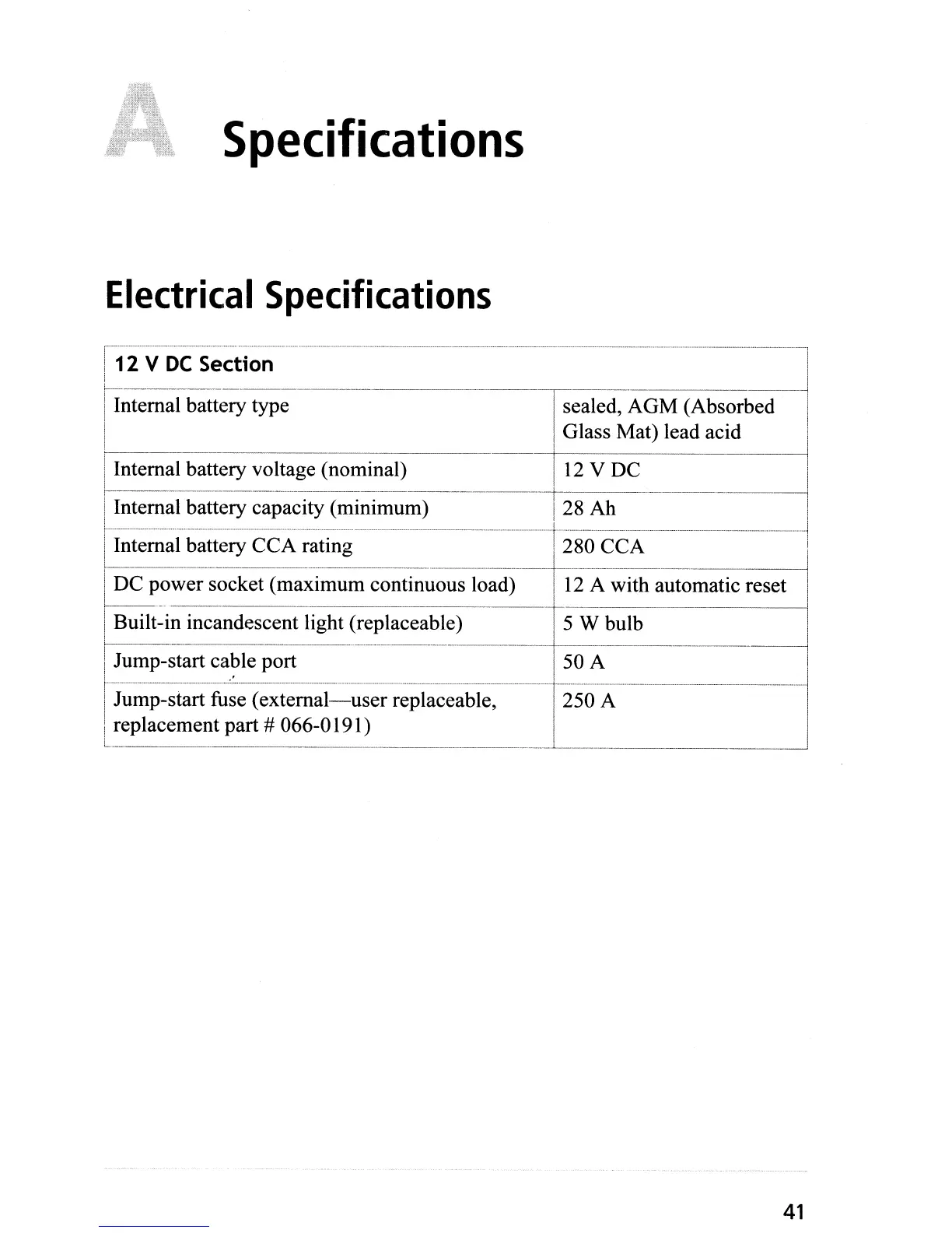 I Jump-start cable port 50 A I