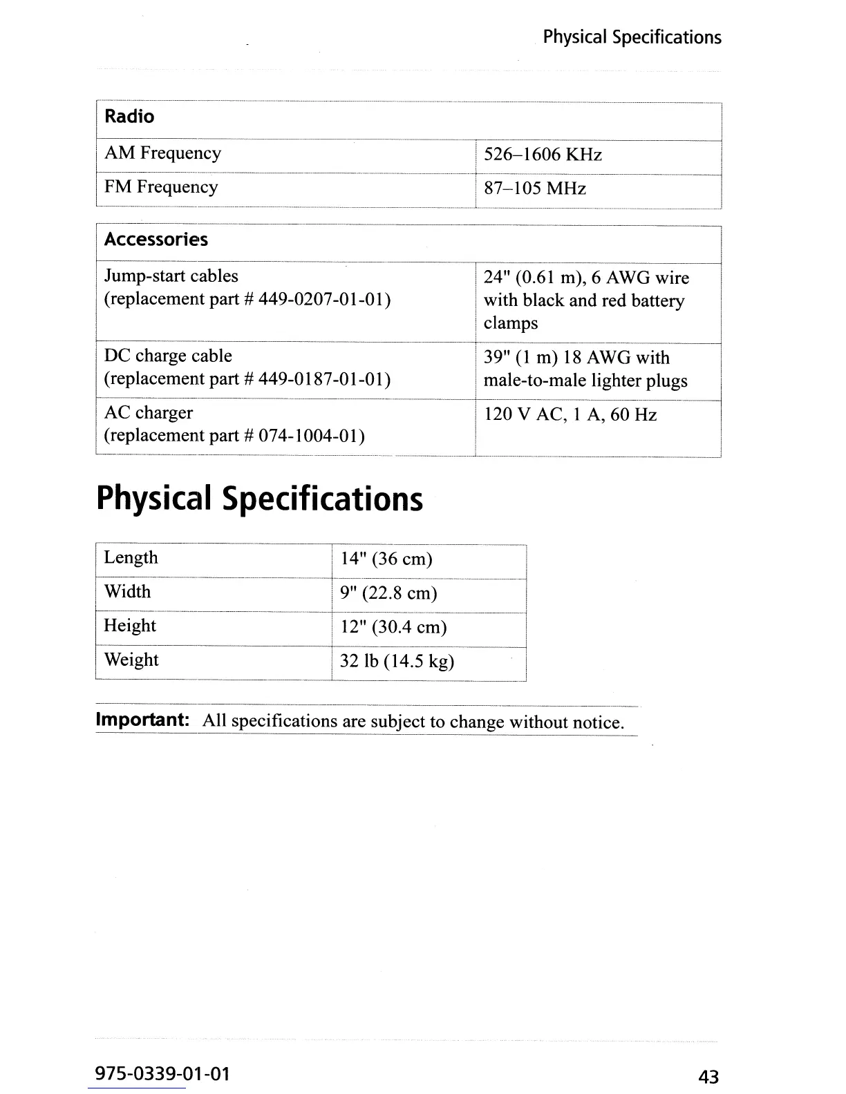 Important: All specifications are subject to change without notice.