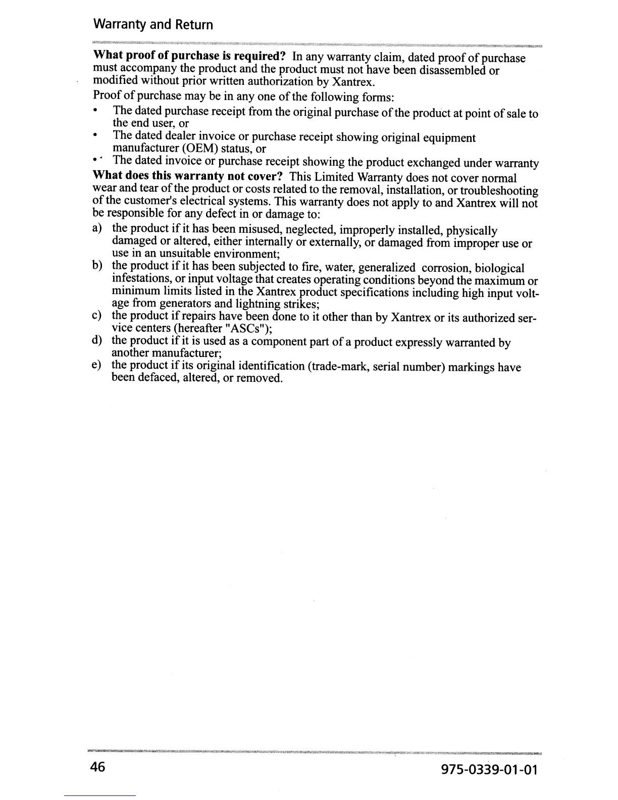 the customer's electrical systems. This warranty does not apply to and Xantrex will not