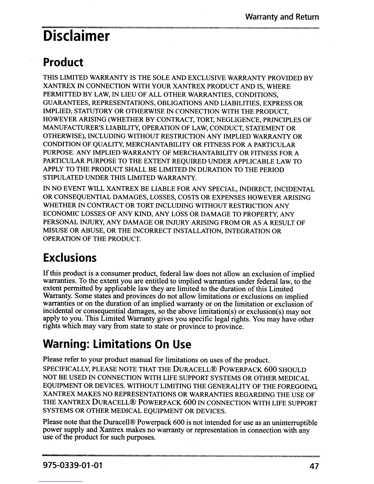Warranty. Some states and provinces do not allow limitations or exclusions on implied